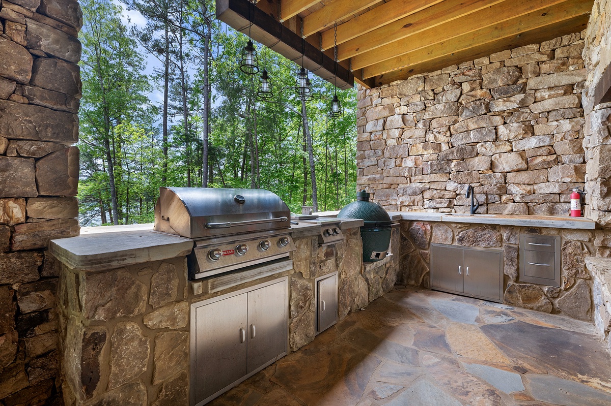 - Lower Level Patio with Outdoor Kitchen with Big Green Egg, Skillet, Gas Grill and Sink