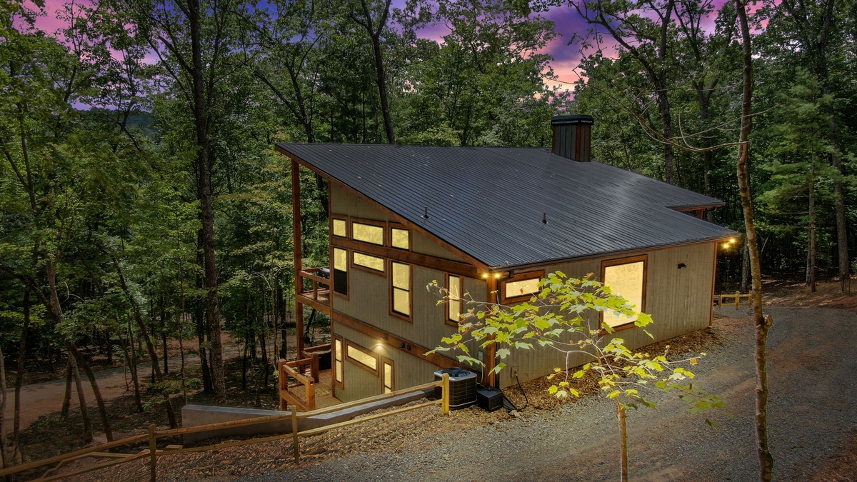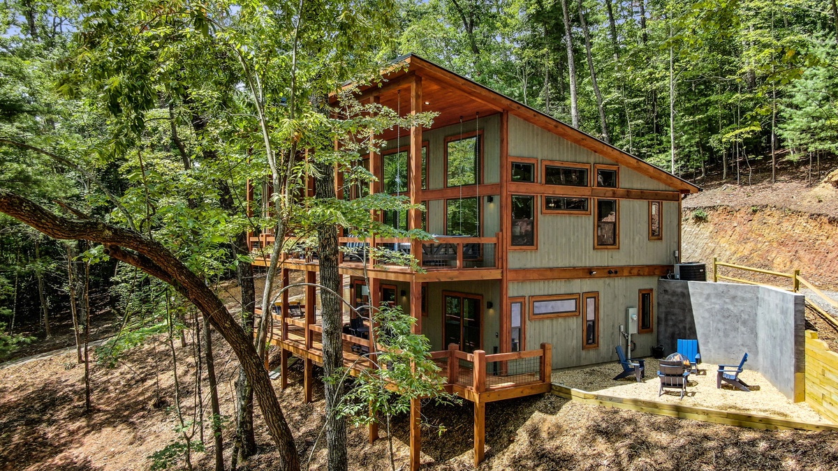 Escape to Oliver’s Modern Twist, a stylish mountain retreat tucked in the peaceful woods of Cherry Log, GA. With sleek architecture, floor-to-ceiling windows, and upscale finishes throughout, this cabin blends modern design with cozy mountain vibes for the ultimate North Georgia escape.