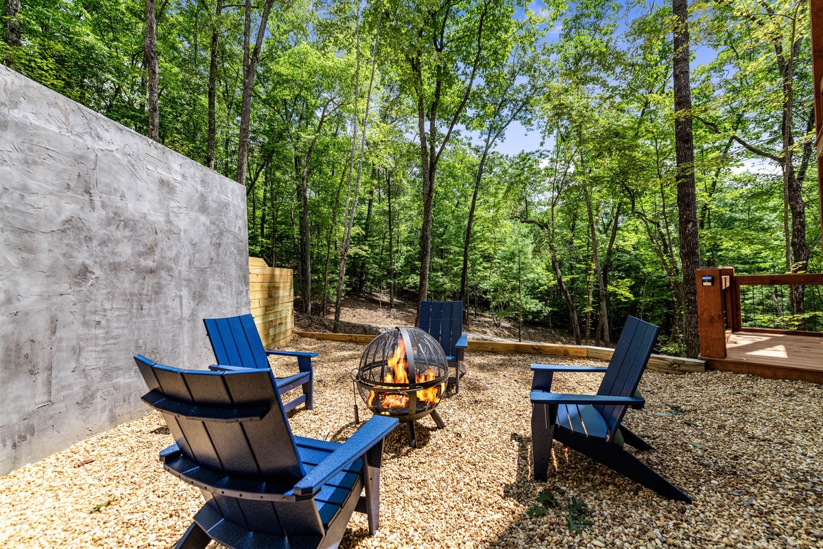 - Manicured firepit with seating