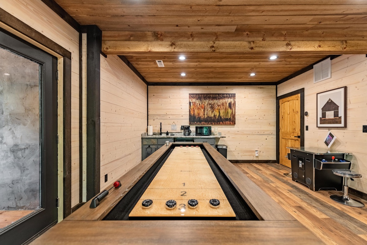 - Game room with shuffleboard table, multi-player arcade & wet bar