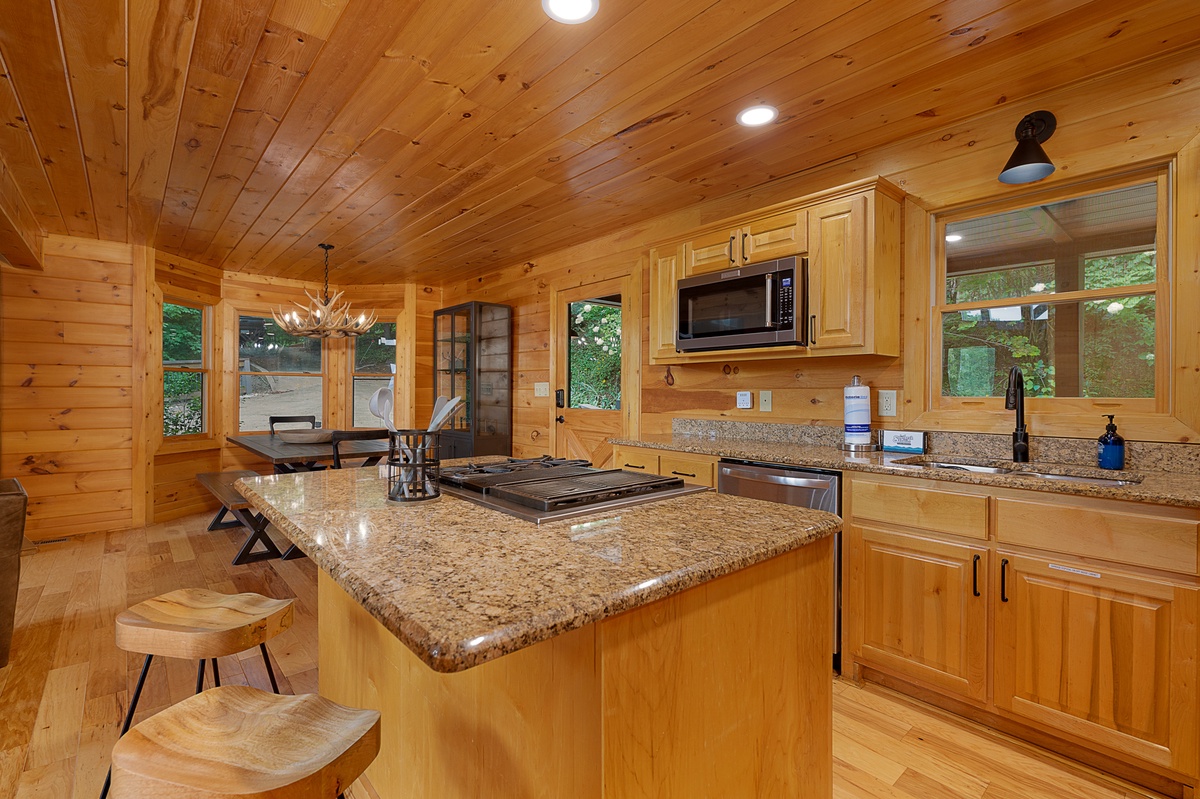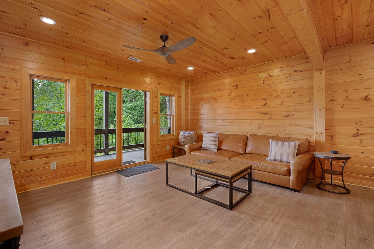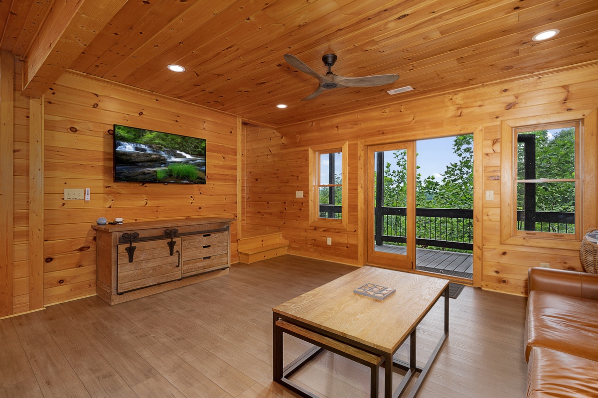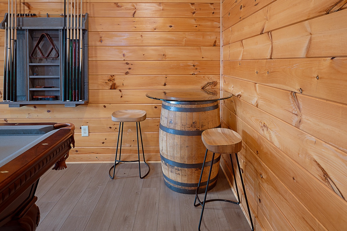 Venture downstairs to the lower level, where entertainment knows no bounds. A king bedroom provides restful slumber, while the den and game room invite friendly competition at the pool table. Another king bedroom on this level offers deck access, creating a seamless connection to the natural beauty that surrounds you. The shared bathroom on this level adds convenience to your stay.