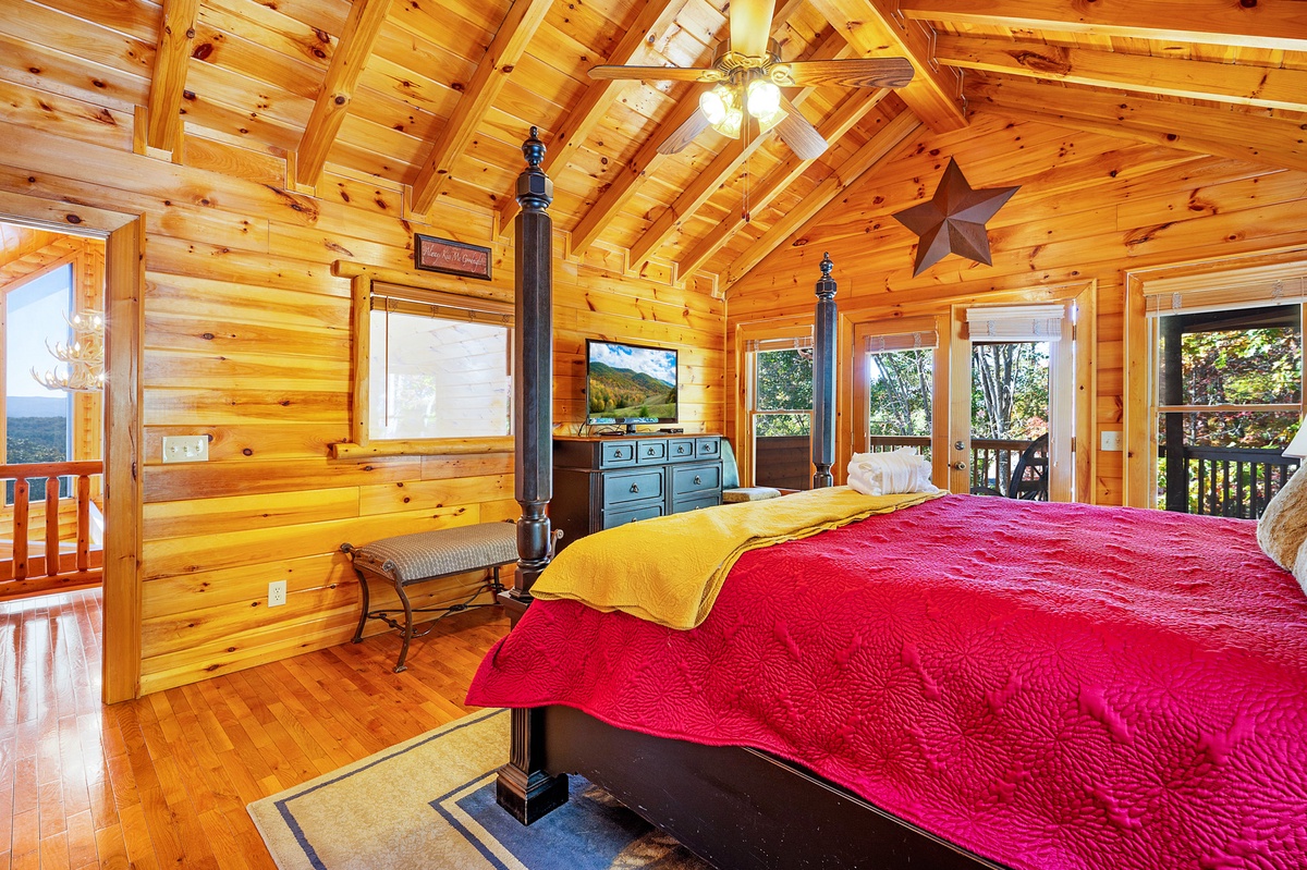 - Primary King Suite 50” Flat Panel TV Ceiling Fan, Sound Machine, Closet, Dresser