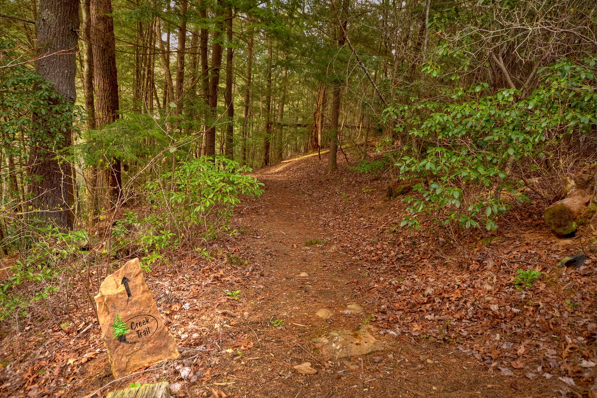 While you will find countless creature comforts inside Reel Creek Lodge, there’s even more to discover outside, starting with a quaint path that leads down to 700 feet of creek front viewing at the banks of Fightingtown Creek. Enjoy a picnic lunch outside as you immerse yourself in the simple beauty of nature. Marvel at the 2nd largest Hemlock in the state of GA. If you prefer, throw on some waders, grab your fishing poles, and enjoy an amazing day of catch and release fishing with friends and family.