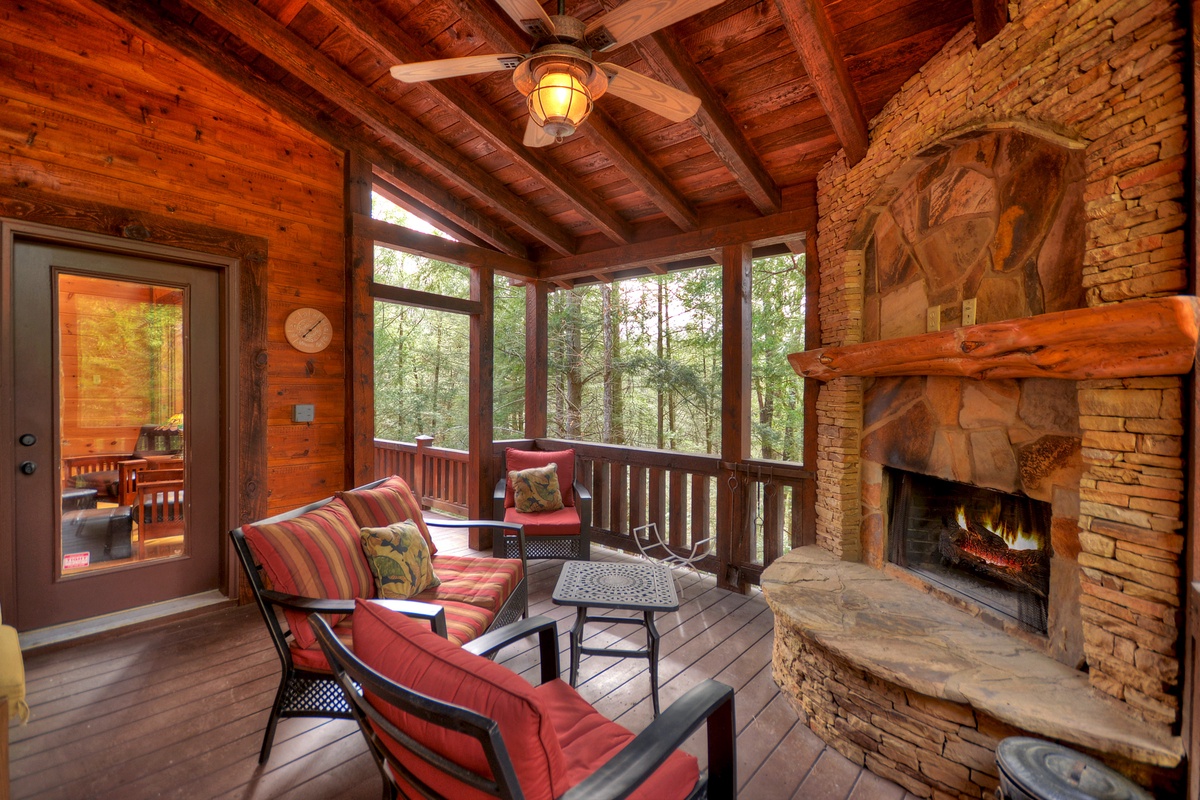 Wraparound Deck with Wood-Burning Fireplace and Outdoor Seating