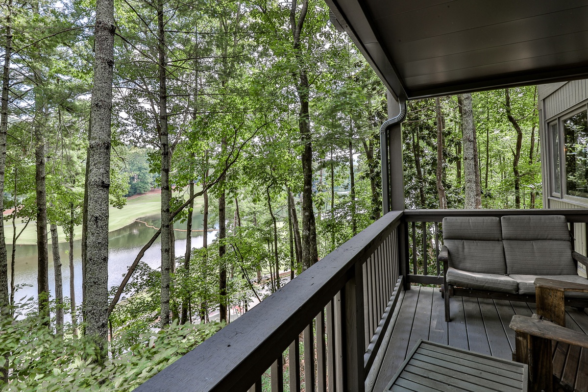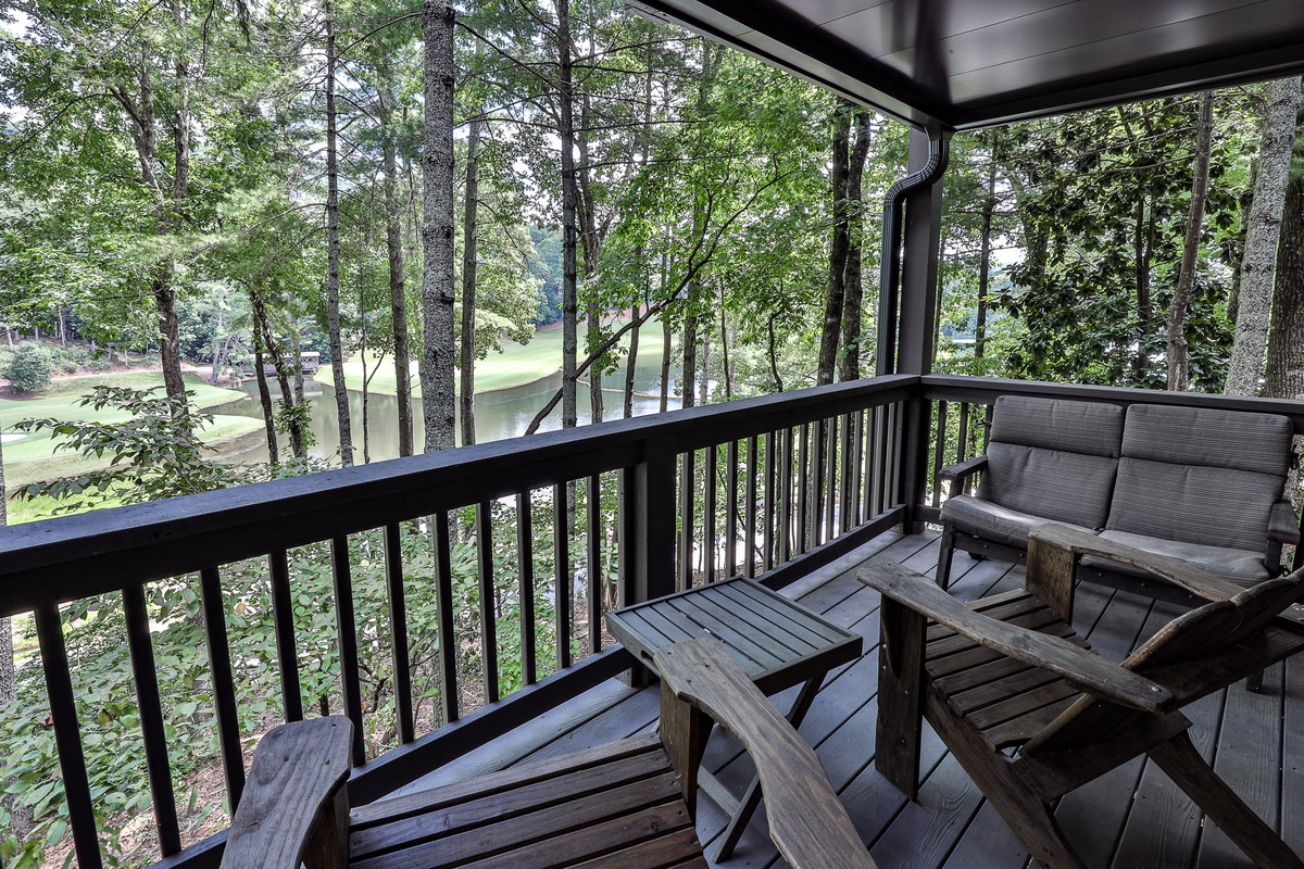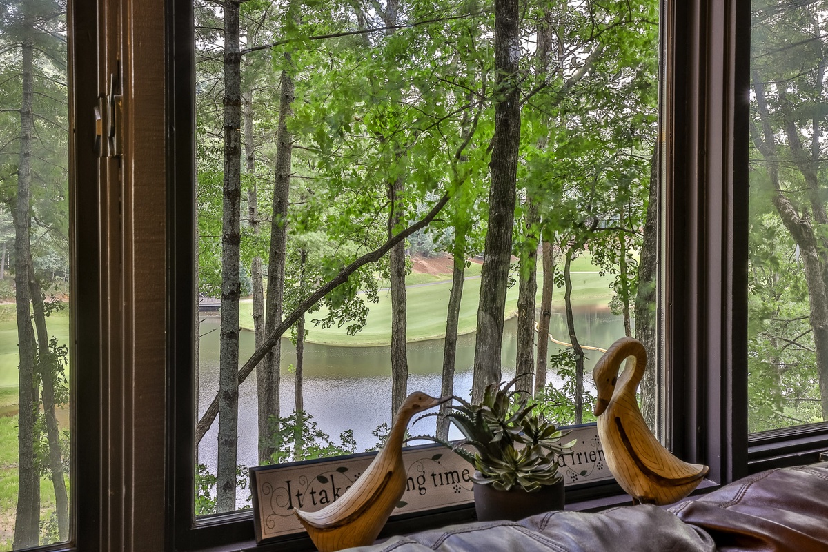 The Retreat at Lake Sconti offers breathtaking views of Lake Sconti, the Covered Bridge, and the award-winning Big Canoe Creek 9 Golf Course. Enjoy these stunning vistas from the living room, dining area, kitchen, and relaxation porch.