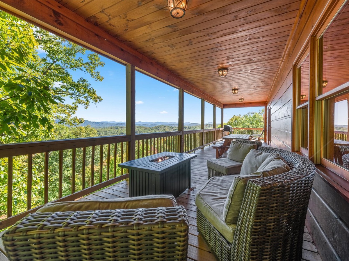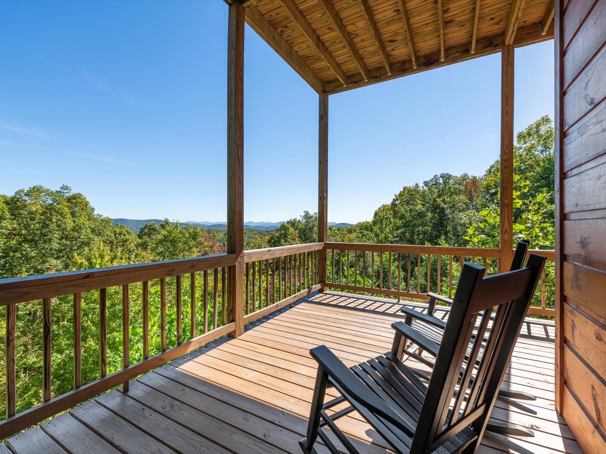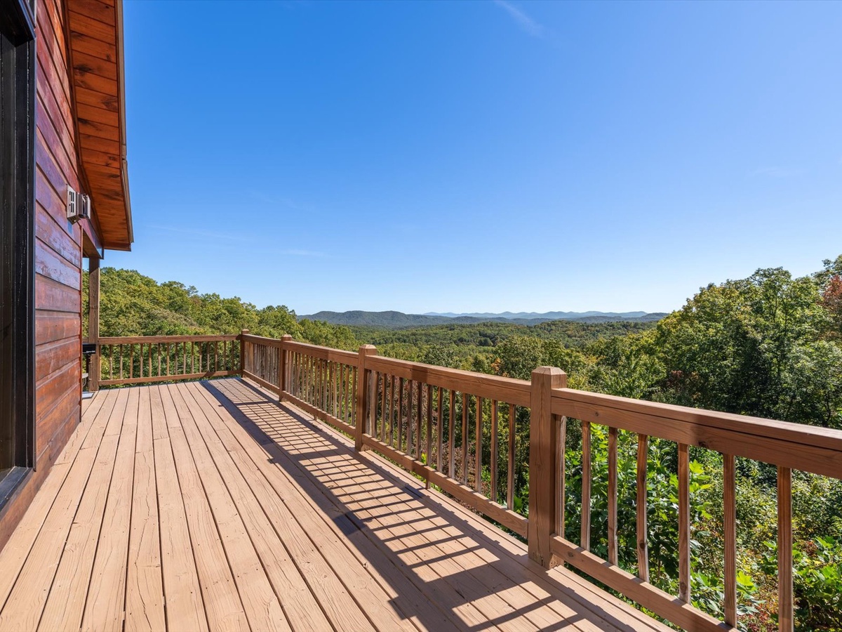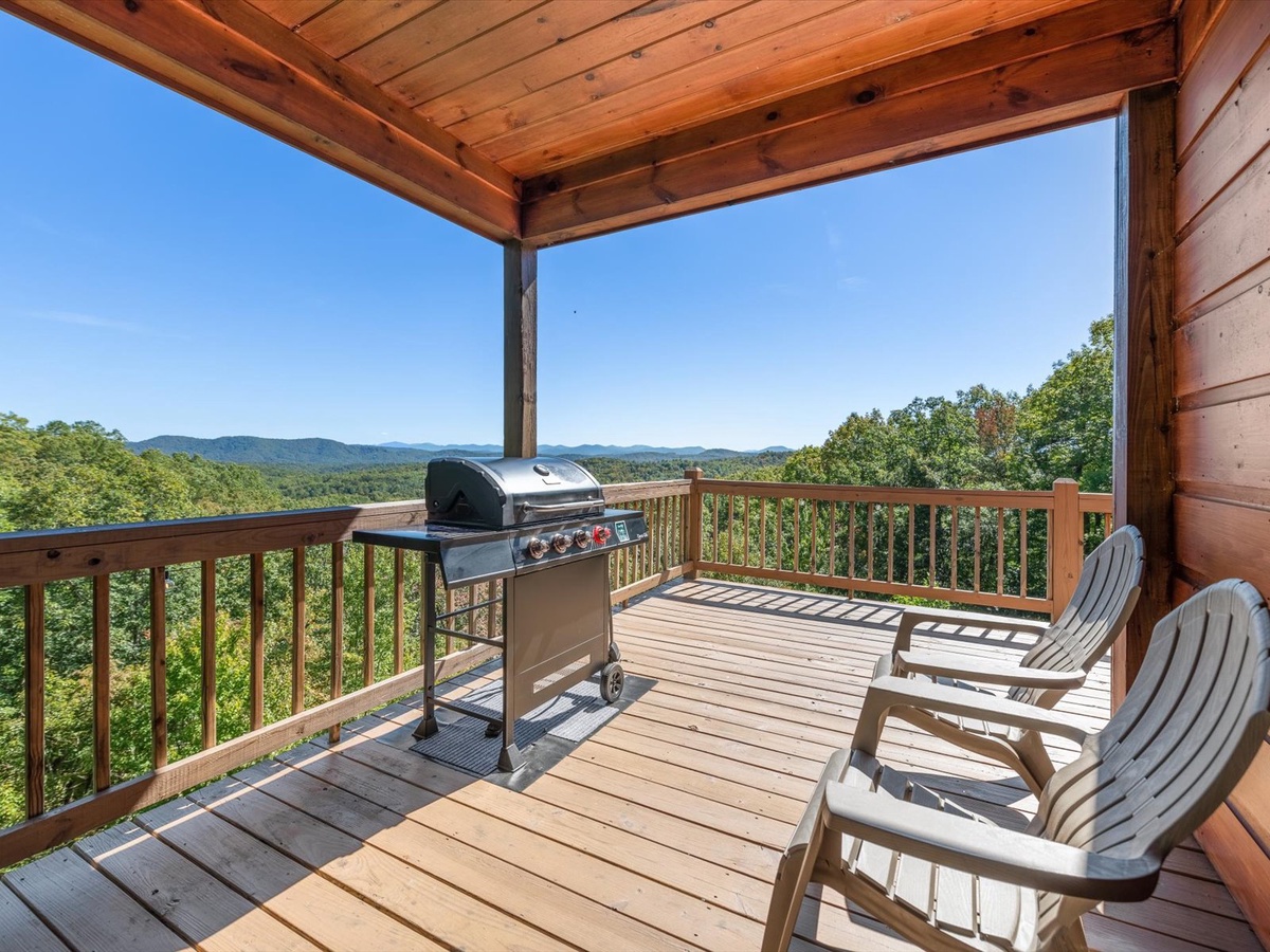Watching the sunrise, or the sunset? Your vacation home gives breathtaking, private mountain views on any of the 3 decks, and an upper balcony. The entry level deck offers a picnic table seating 8, a gas grill and seating around a gas fire table. Head back down to the lower-level fun and walk out onto the deck to find a hot tub and corn-hole.