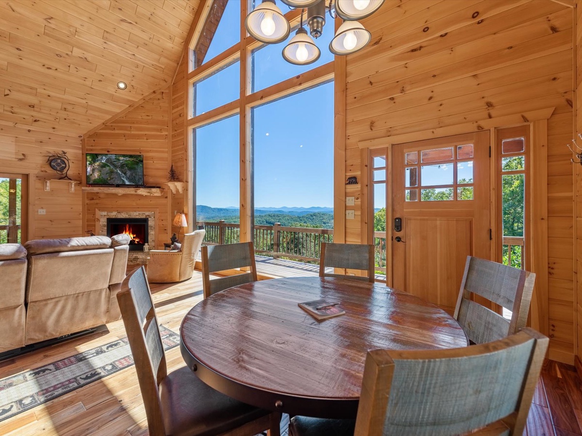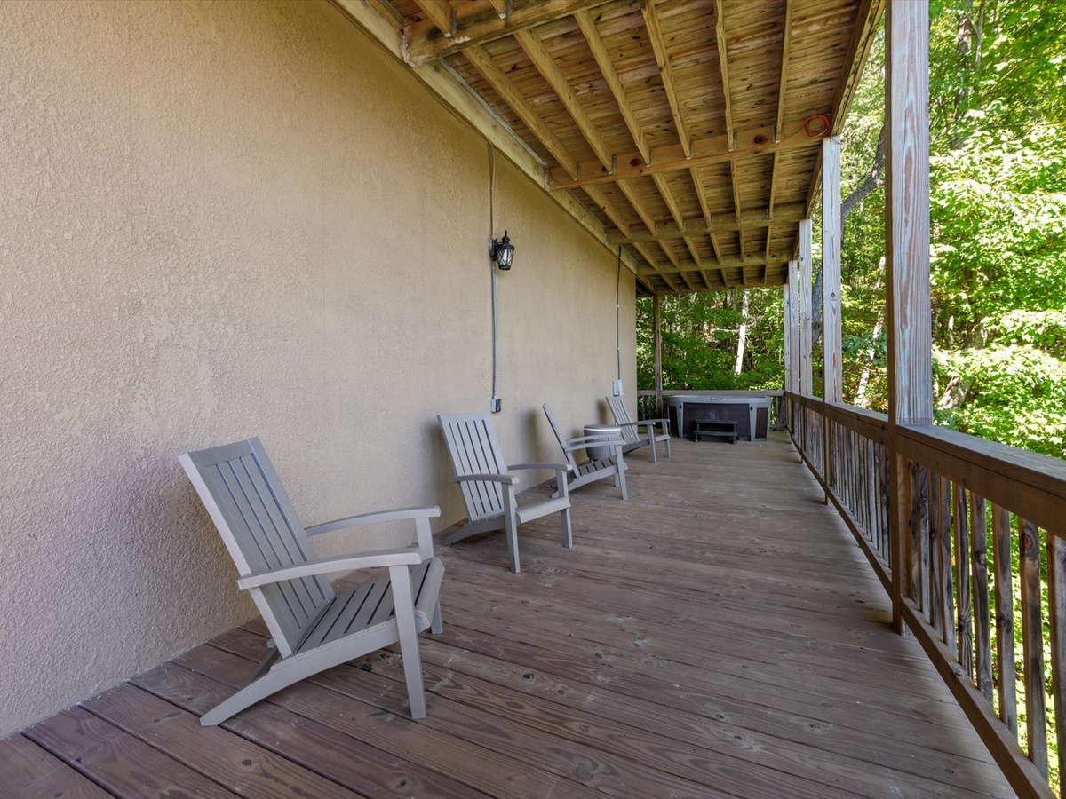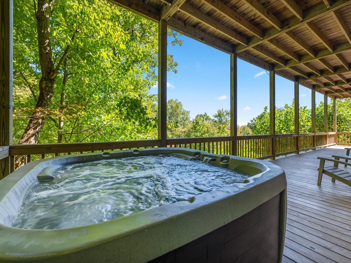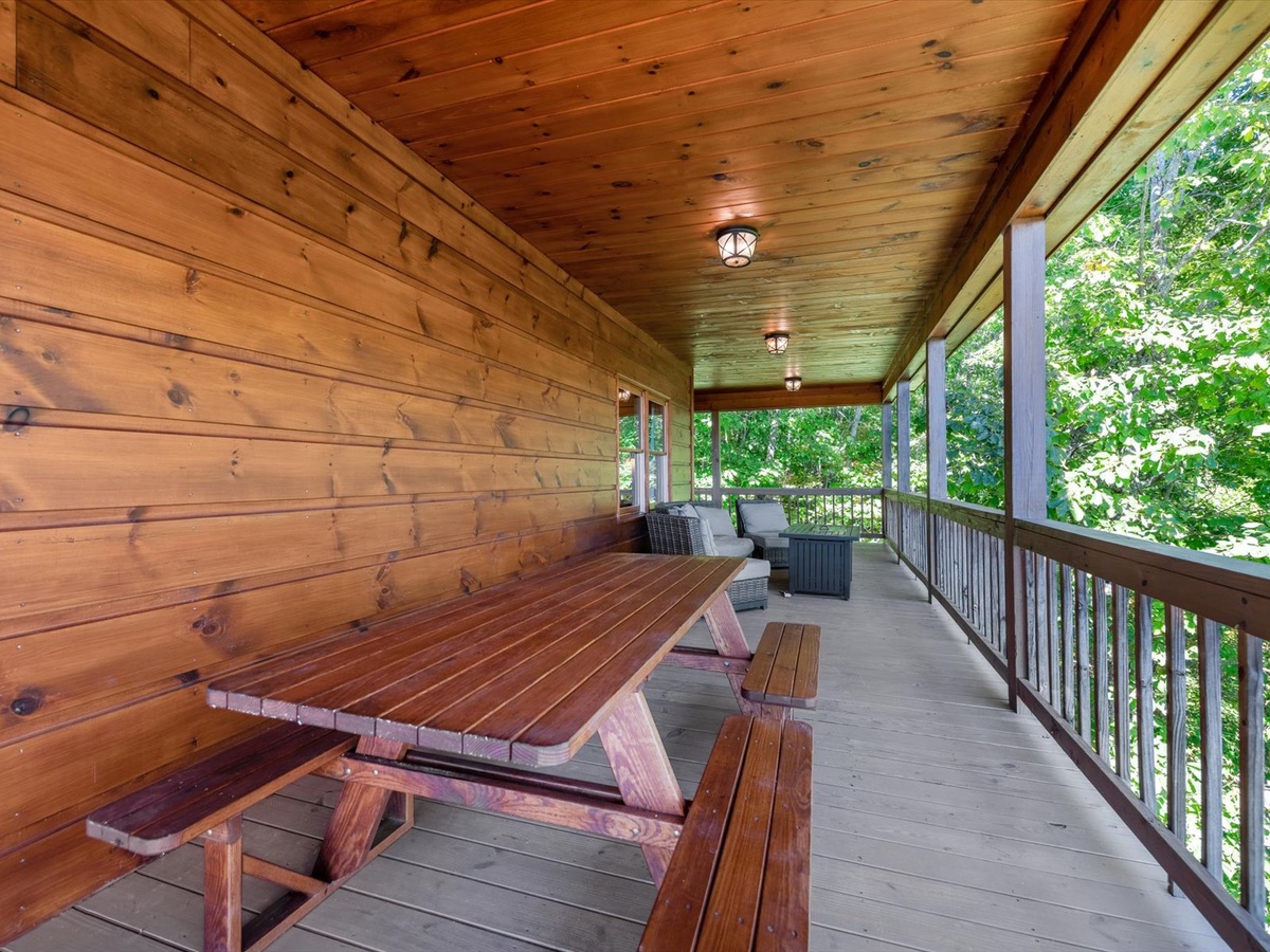 Watching the sunrise, or the sunset? Your vacation home gives breathtaking, private mountain views on any of the 3 decks, and an upper balcony. The entry level deck offers a picnic table seating 8, a gas grill and seating around a gas fire table. Head back down to the lower-level fun and walk out onto the deck to find a hot tub and corn-hole.