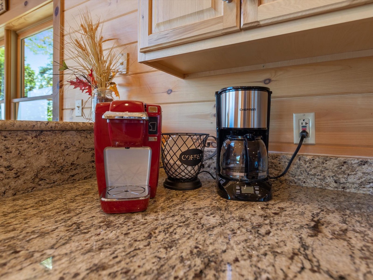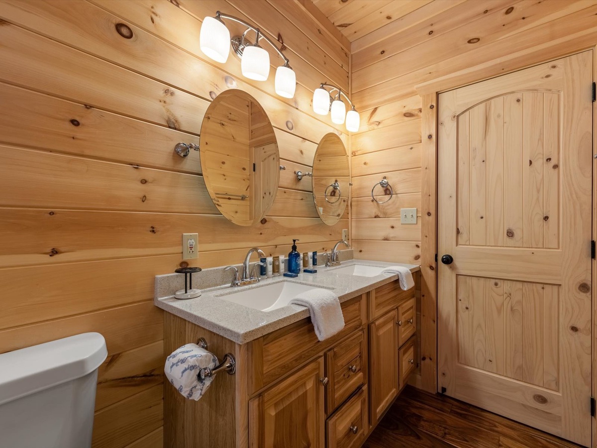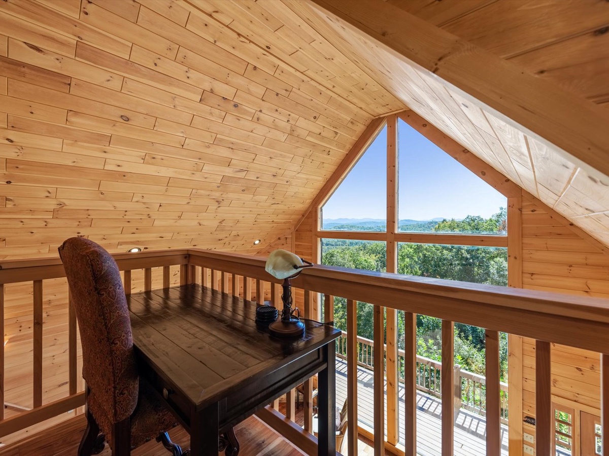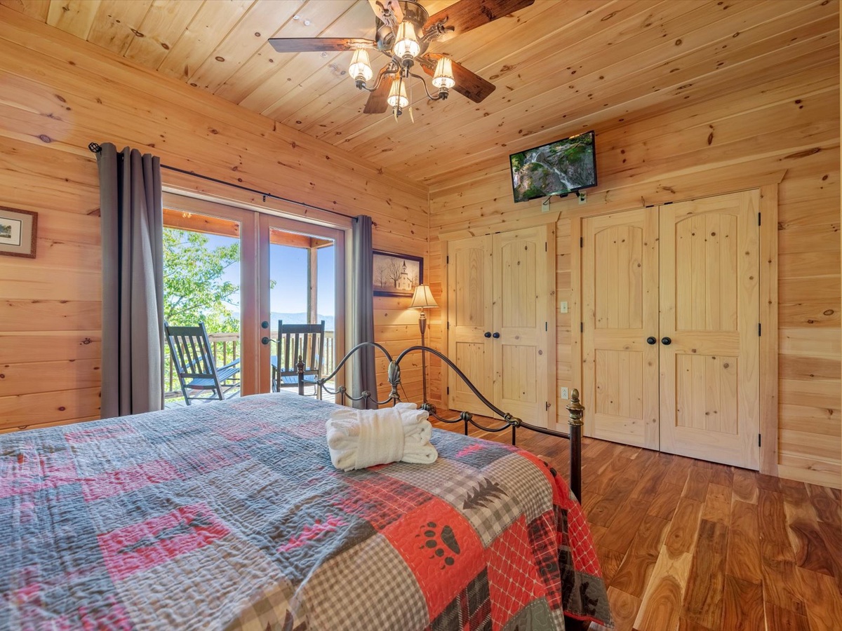 Watching the sunrise, or the sunset? Your vacation home gives breathtaking, private mountain views on any of the 3 decks, and an upper balcony. The entry level deck offers a picnic table seating 8, a gas grill and seating around a gas fire table. Head back down to the lower-level fun and walk out onto the deck to find a hot tub and corn-hole.