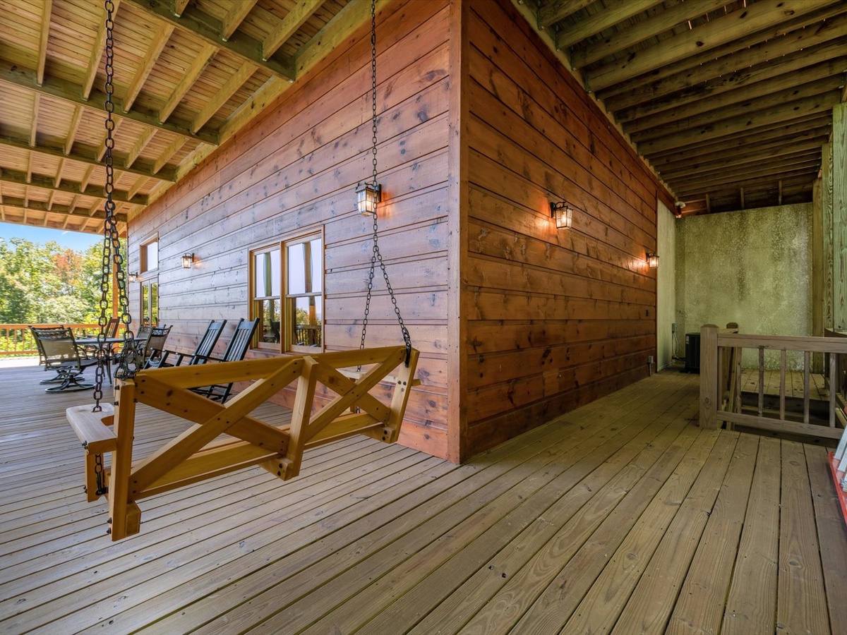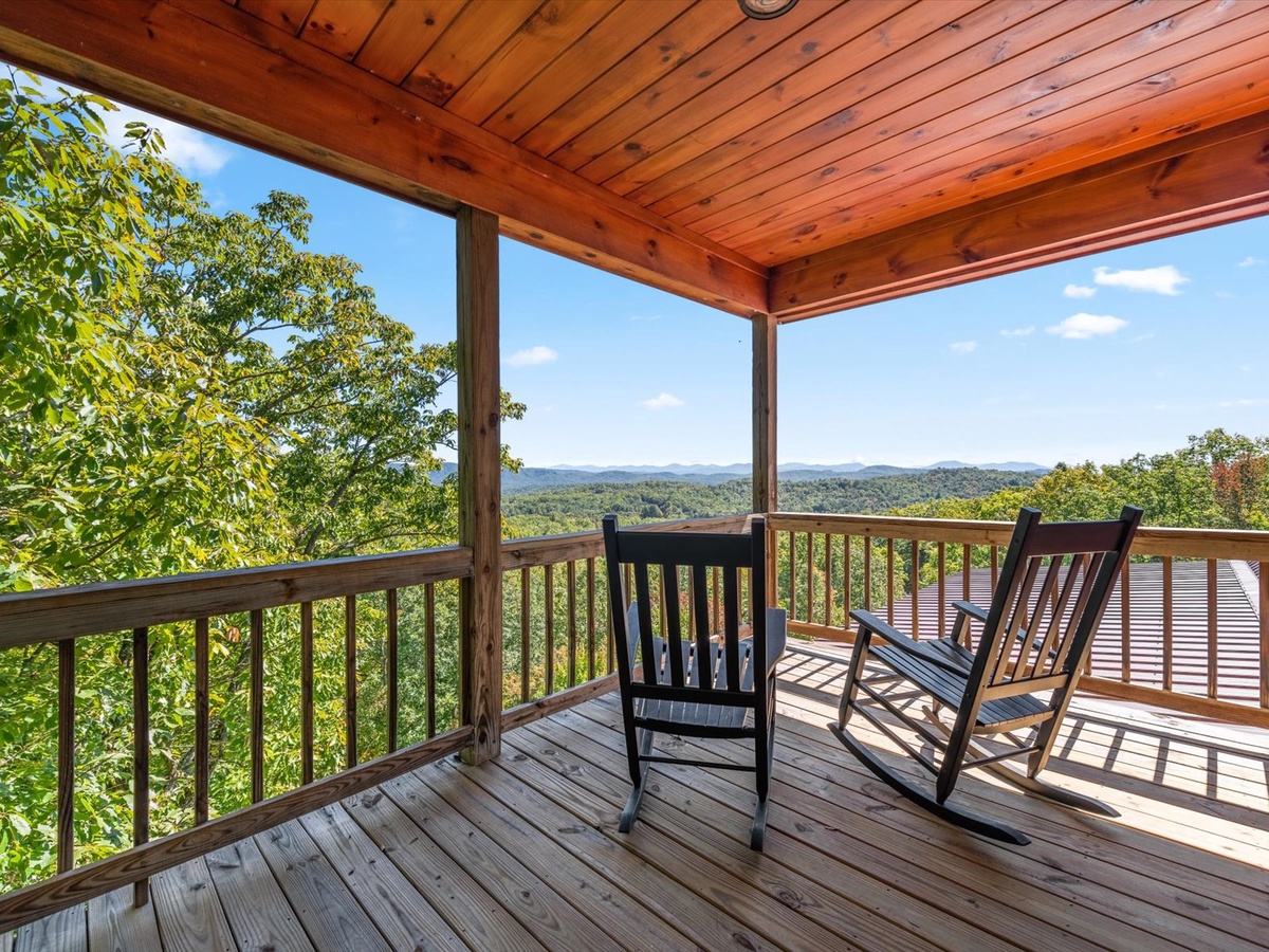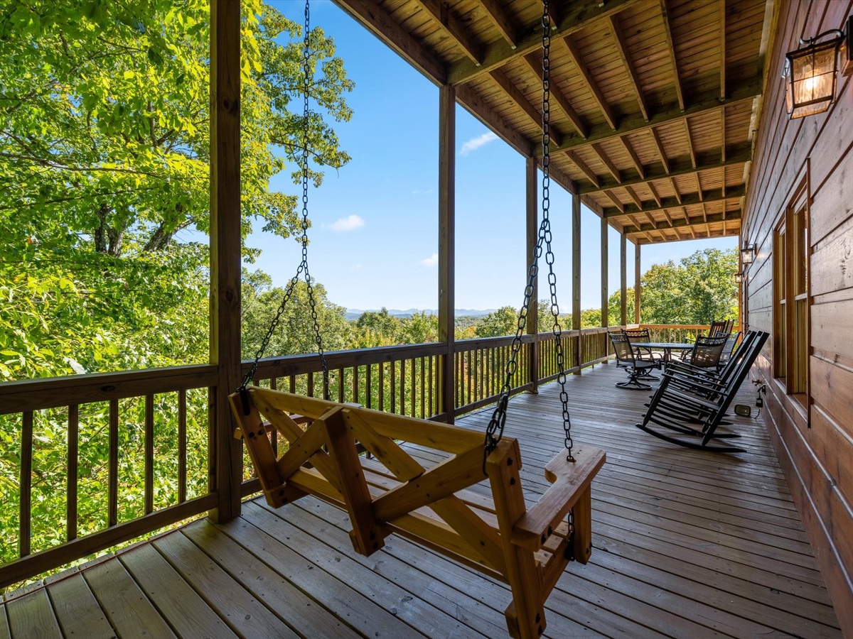 The 3rd level has rocking chairs, table seating for 4 and a porch swing perfect for 2. Spend the mornings with a book in hand rocking to the rhythm of nature’s sounds, and swing into the evenings with the sights of the sunset and reminisce on the day’s activities with loved ones.