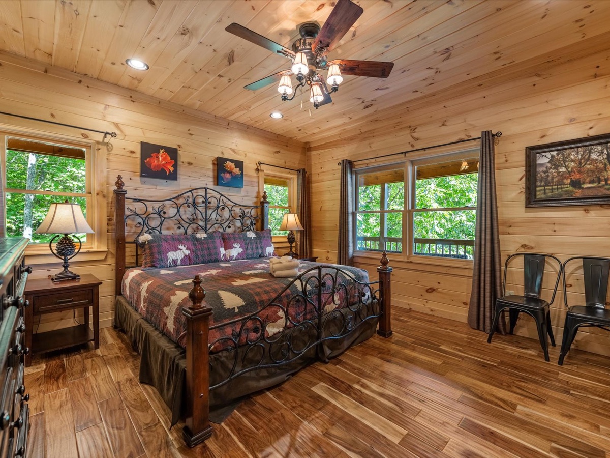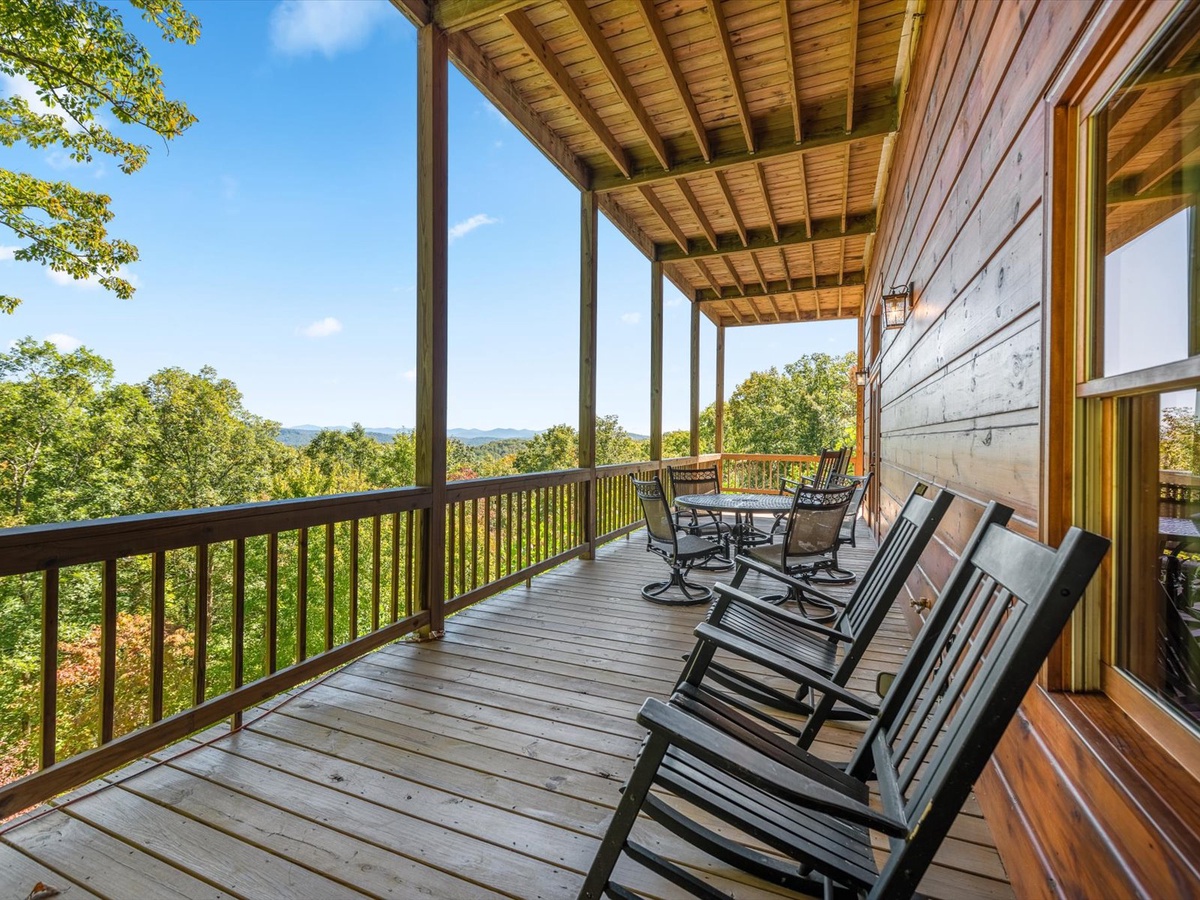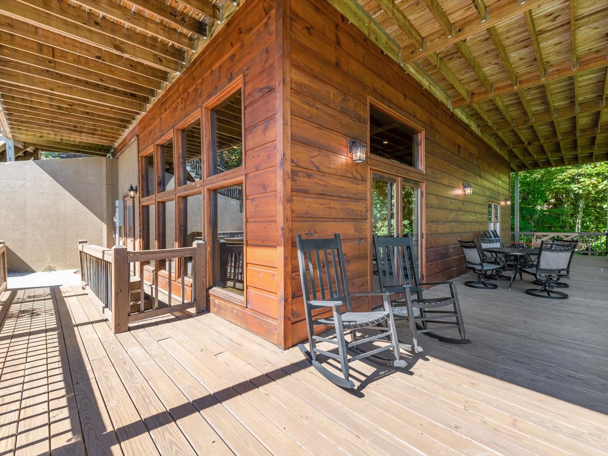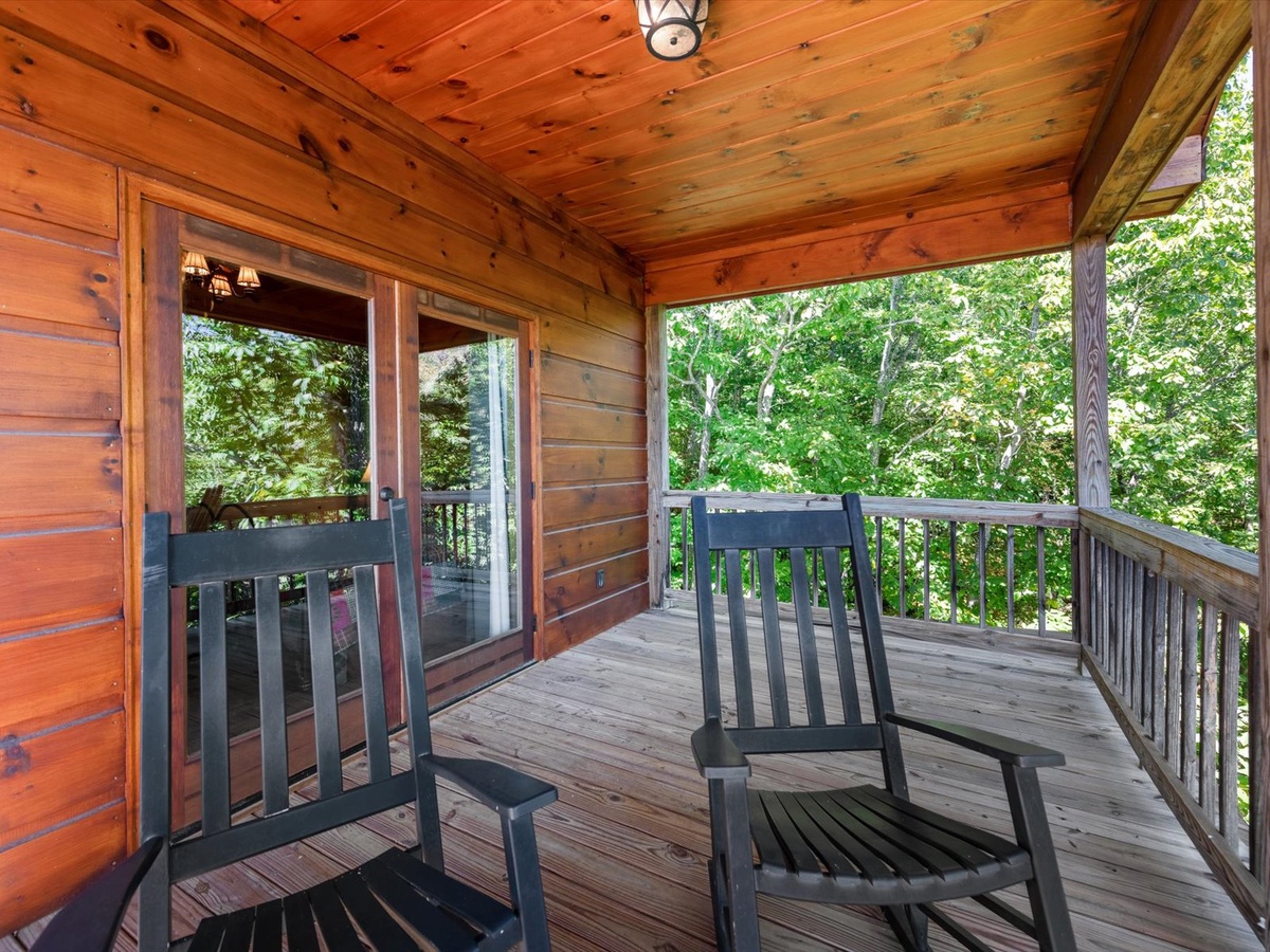 The 3rd level has rocking chairs, table seating for 4 and a porch swing perfect for 2. Spend the mornings with a book in hand rocking to the rhythm of nature’s sounds, and swing into the evenings with the sights of the sunset and reminisce on the day’s activities with loved ones.