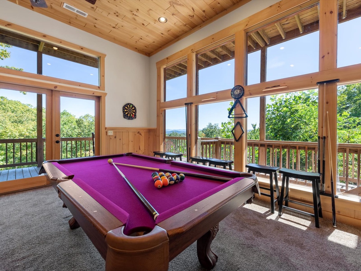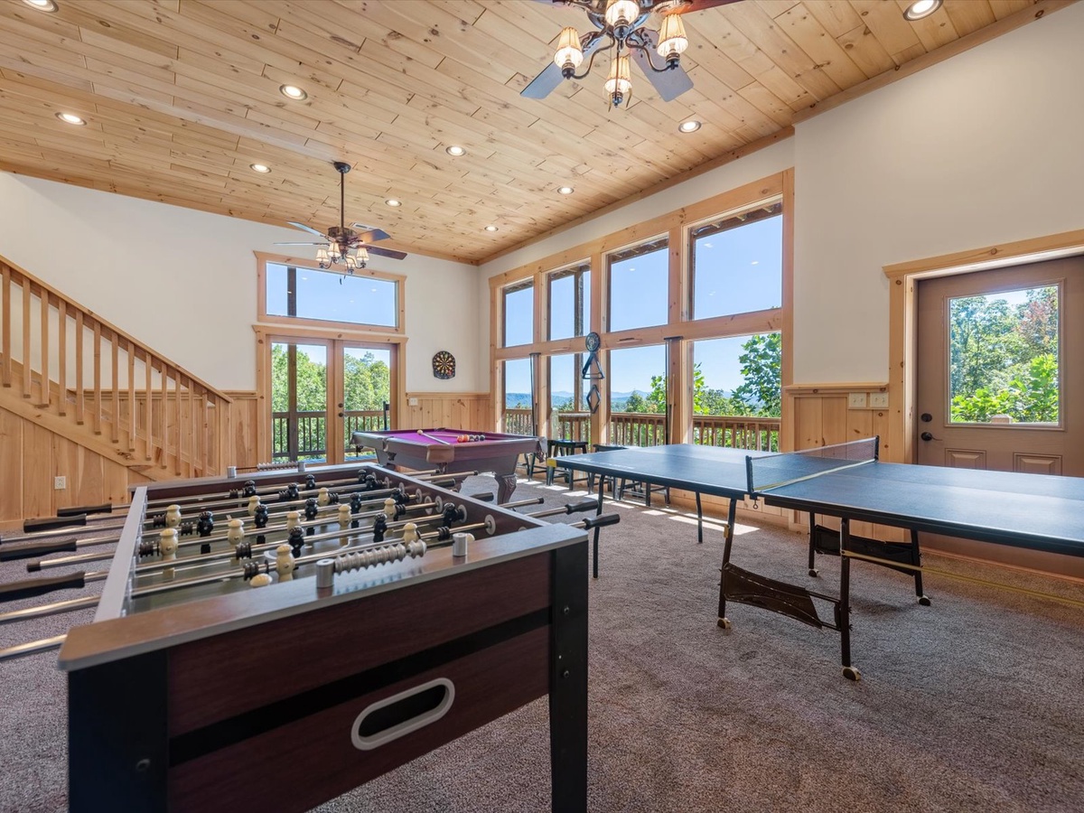 - Game room with pool table, foosball, ping-pong table, darts and ring toss