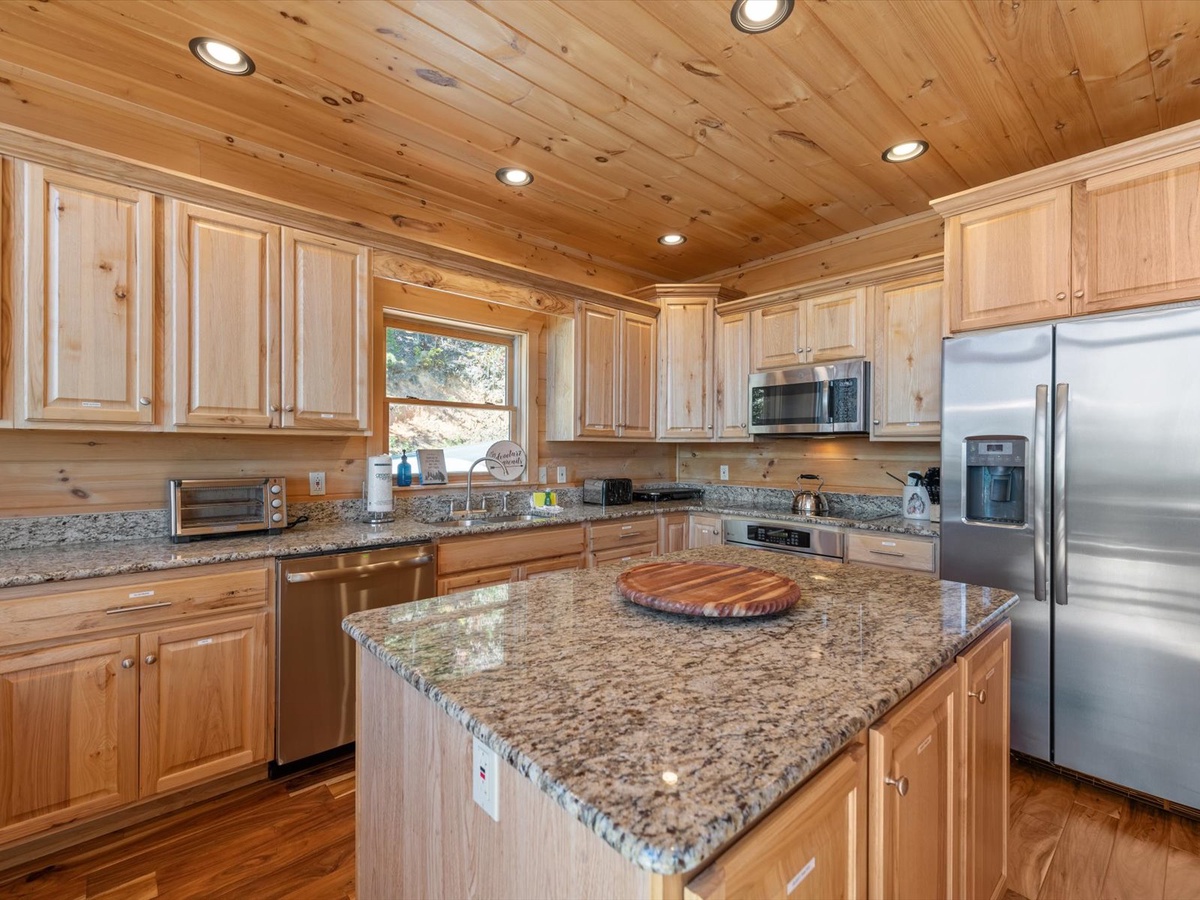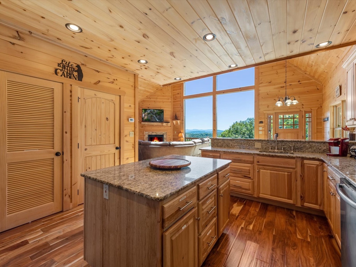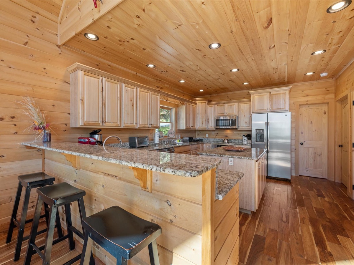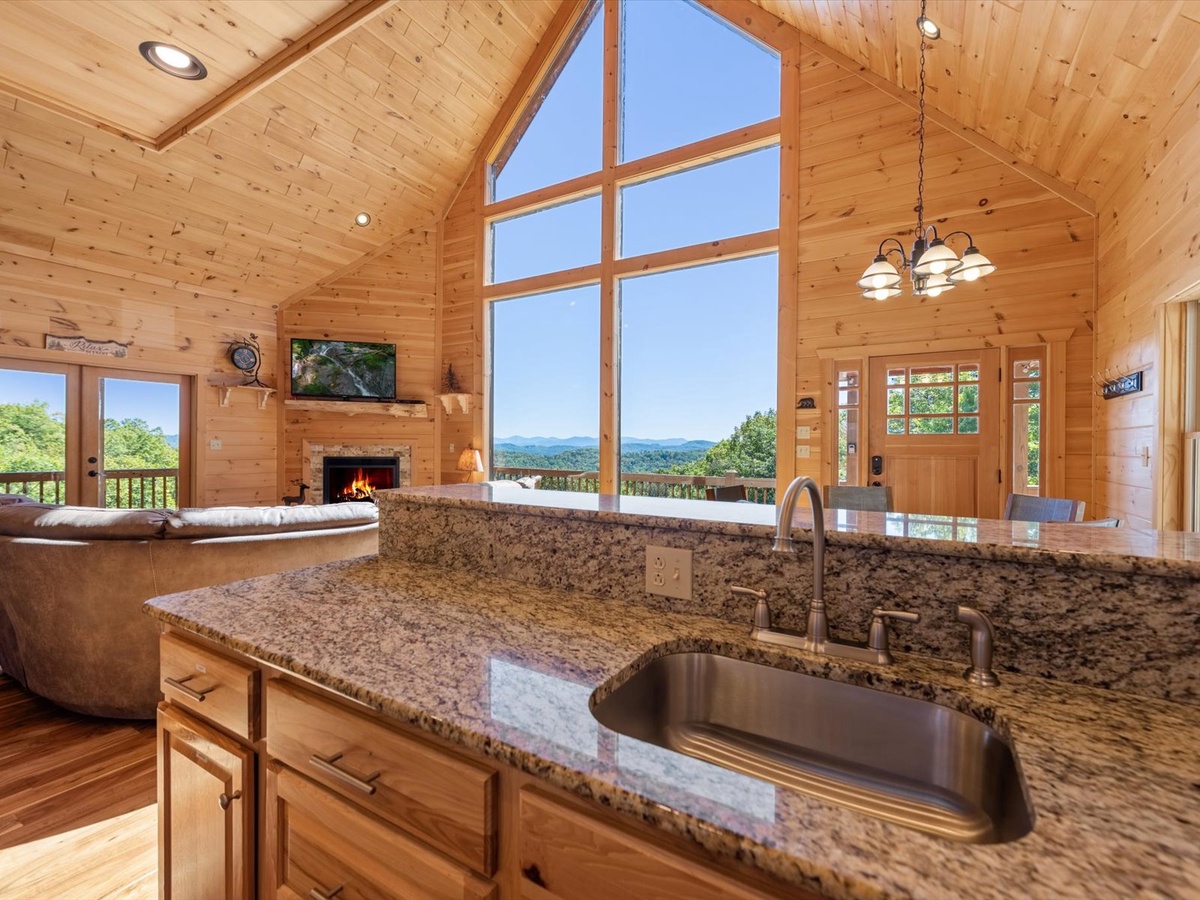 When you pull up the drive to your vacation destination, you will catch yourself gazing at the magnificent mountain views before you. Vacation has already begun, as you walk onto the deck and ease open the front door, welcomed by spacious floor to ceiling windows in the living room, a warm fireplace to spend your evenings, and just a few steps from the living room is the kitchen waiting for you to cook your family favorites or indulge in some late-night snacks.