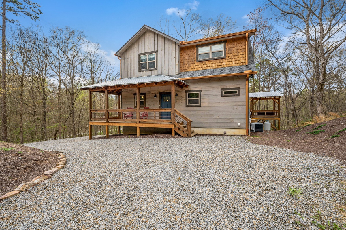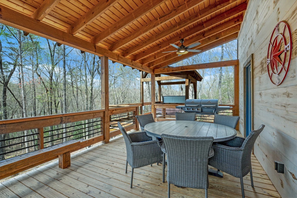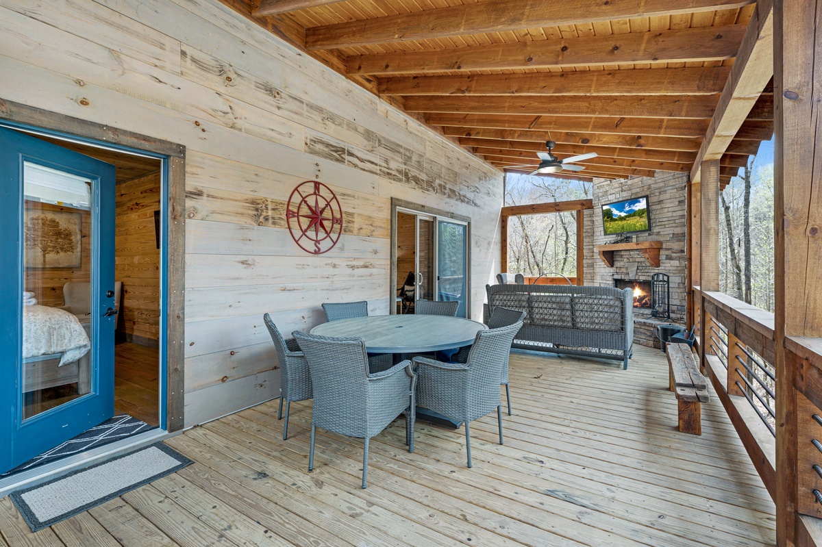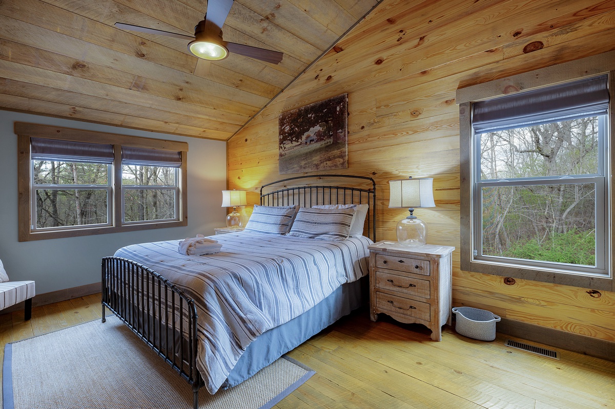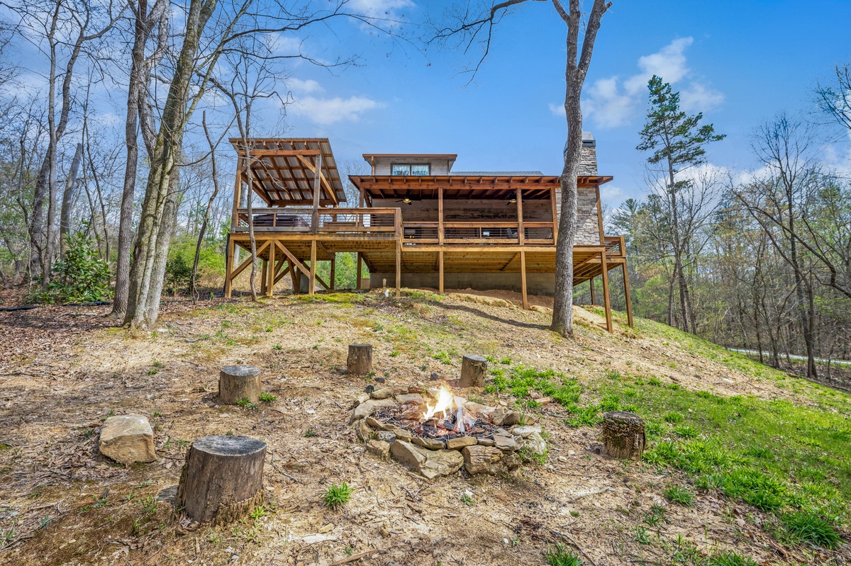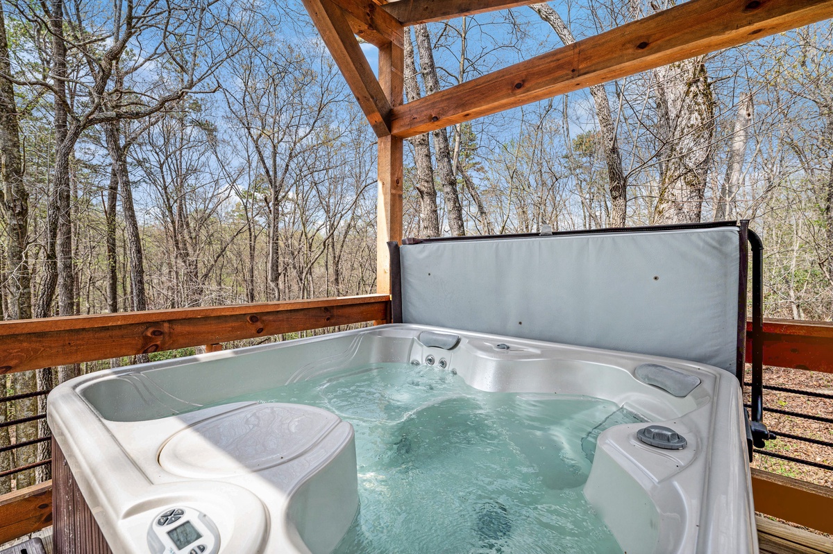 After your day of adventures and memory building, you’ll find great pleasure relaxing in your private covered hot tub, while sipping on your favorite beverage. As the evening winds down, savor the quiet, mountain air and star filled night while sitting around either the outdoor wood burning fireplace or the fire pit below. Relive the memories of the day, as you lay your head to rest, listening to the sounds of nature singing their nighttime lullaby.