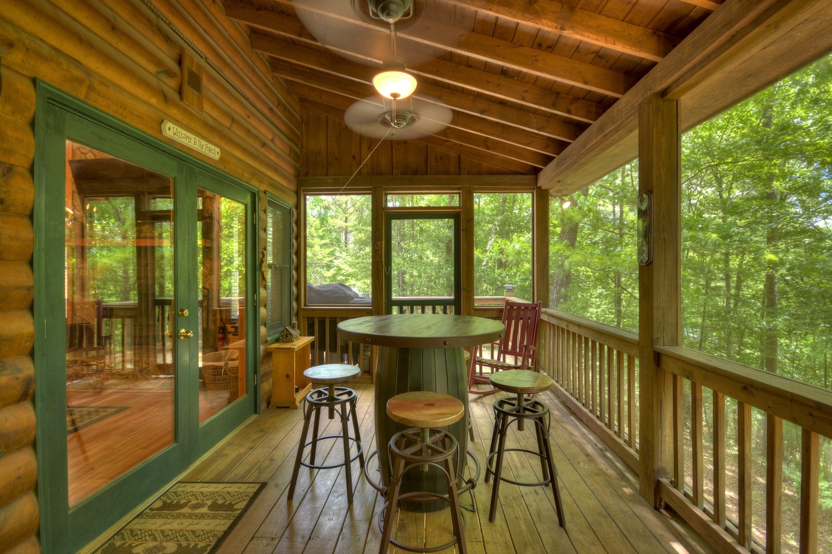 - Screened-in Porch with Rocking Chairs and Ample Seating