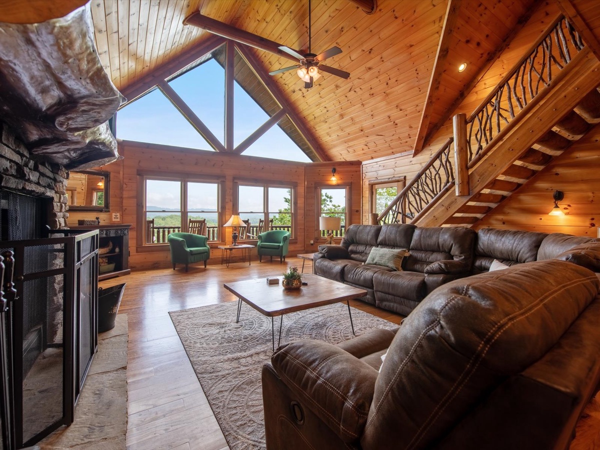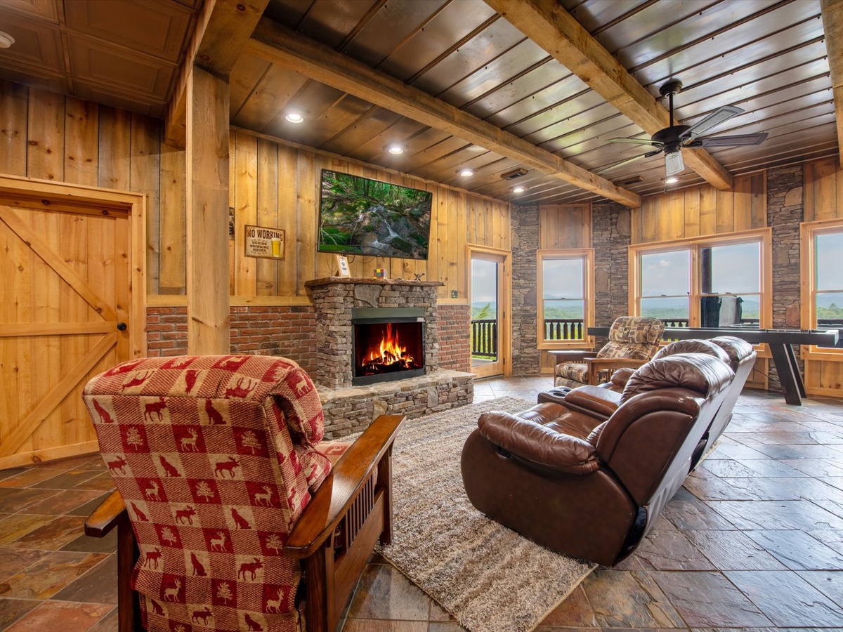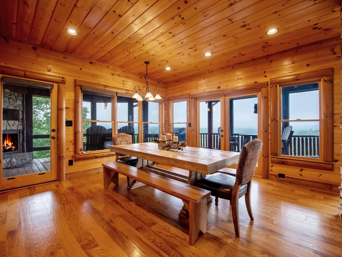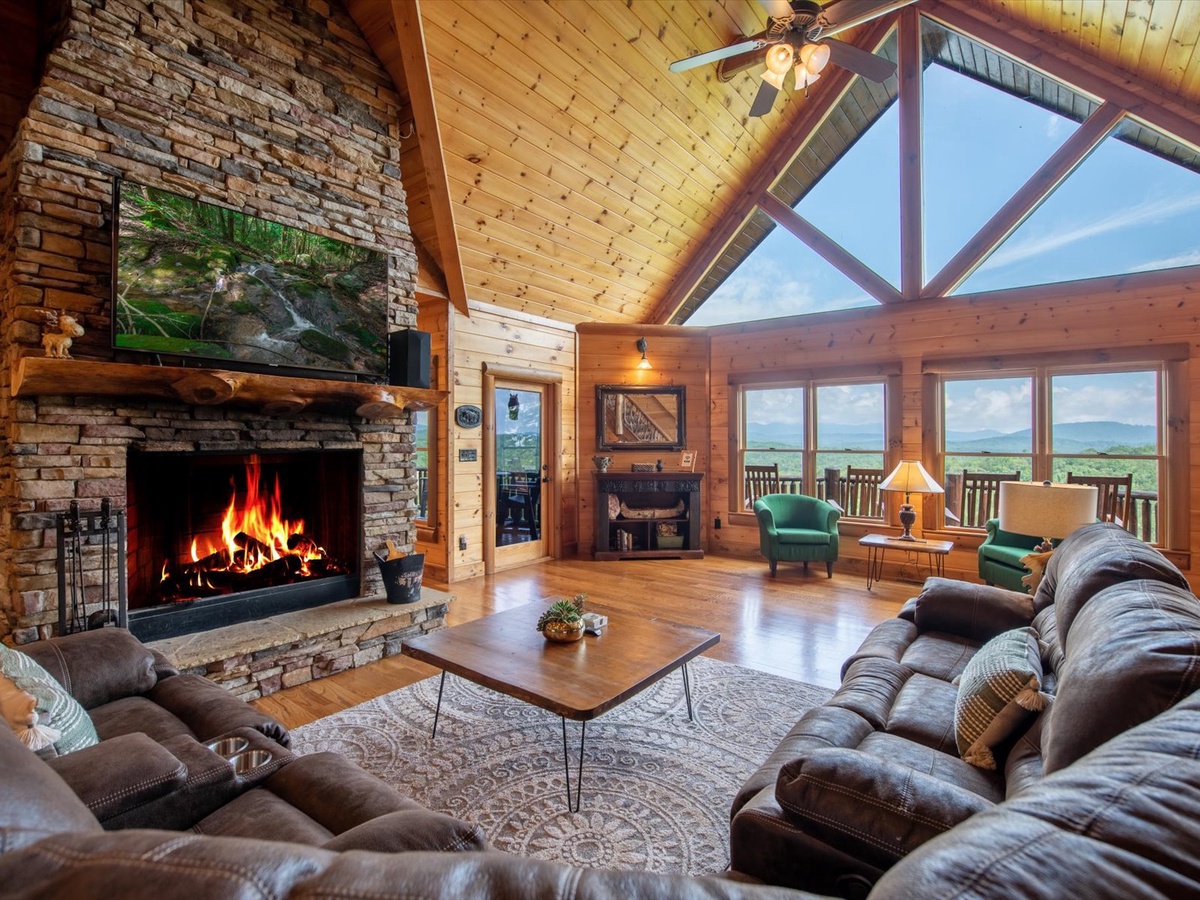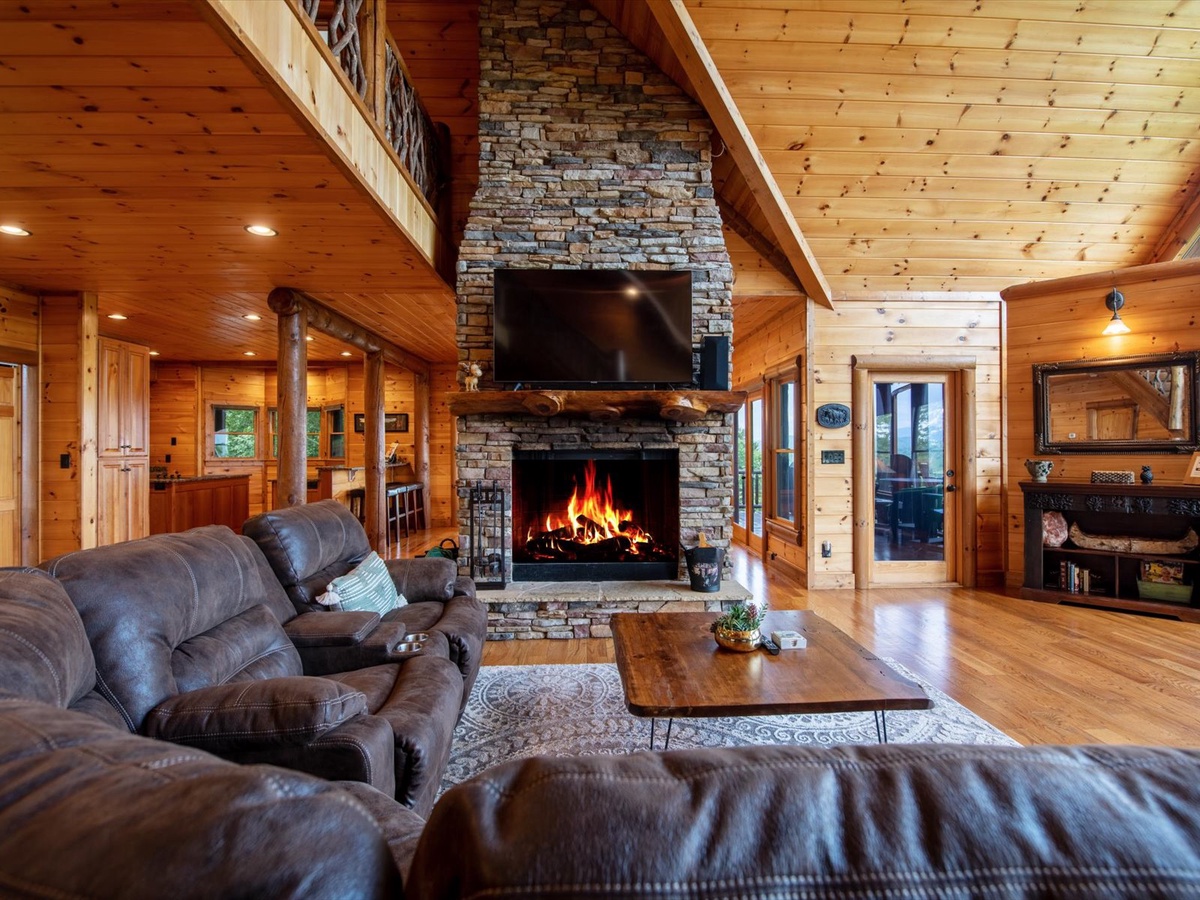 Before entering this wonderful cabin, take a look at the view on the front porch area that conveniently offers an outdoor fireplace for your enjoyment. The outside deck area also provides plenty of seating for you and your friends to simply sit back and breath the fresh mountain air...you'll need it after the stunning view takes your breath away. Inside the cabin, find an abundance of comfort and luxury.