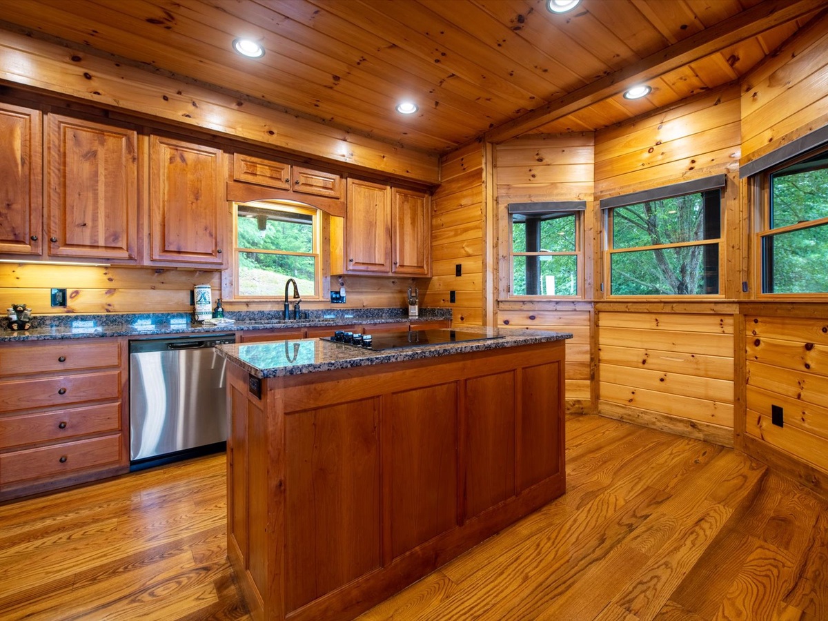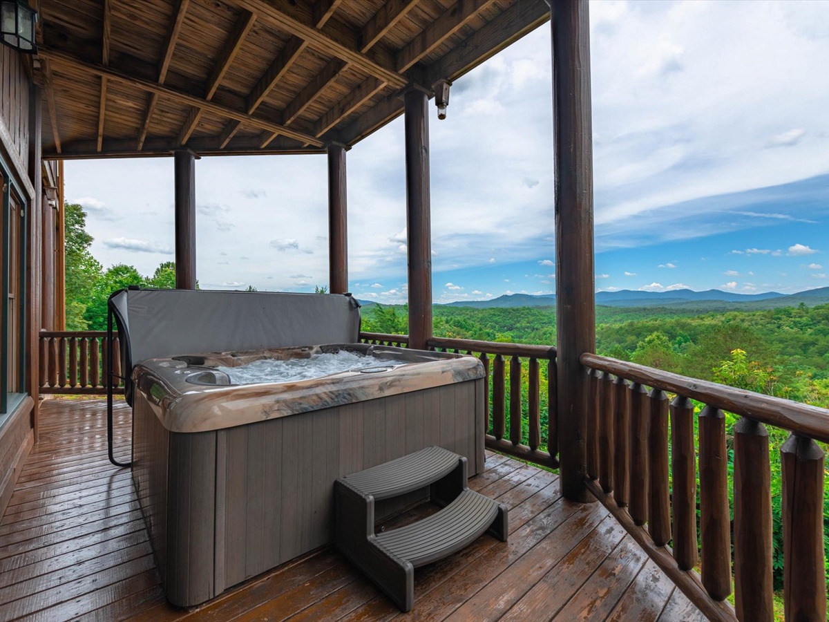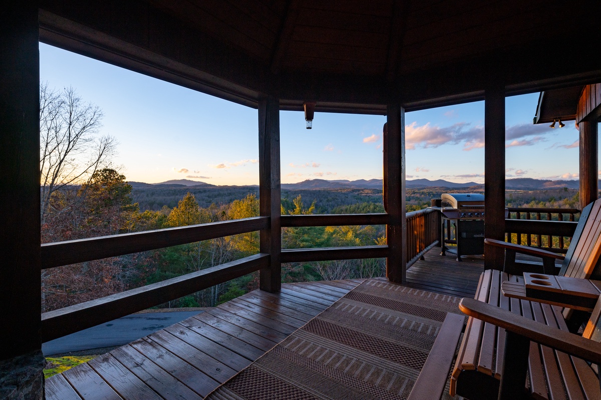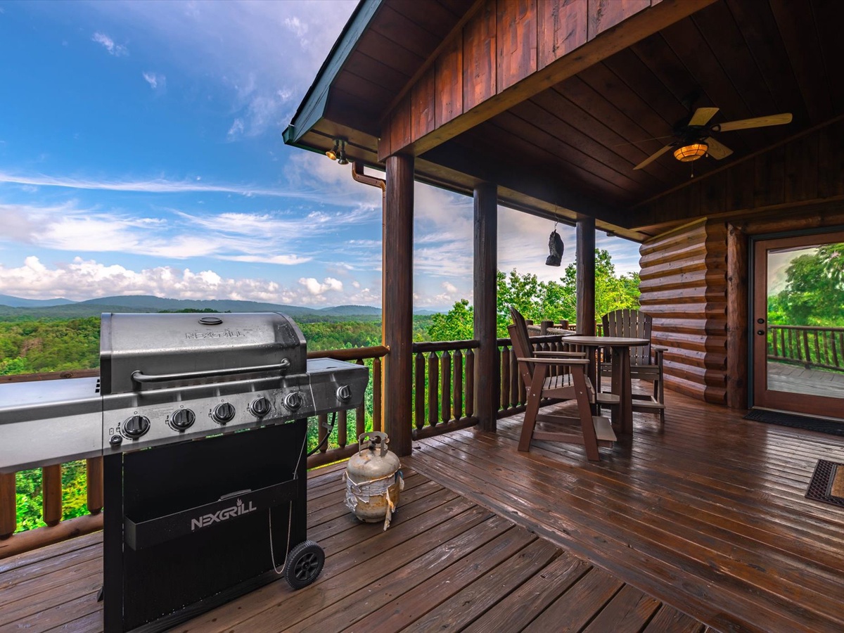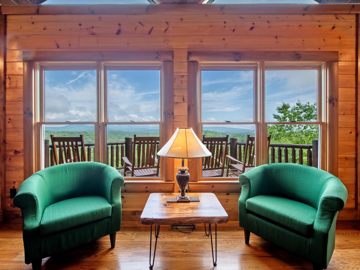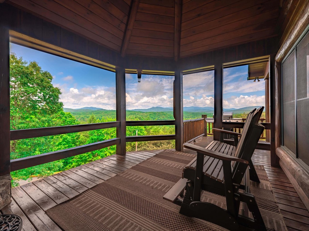 Before entering this wonderful cabin, take a look at the view on the front porch area that conveniently offers an outdoor fireplace for your enjoyment. The outside deck area also provides plenty of seating for you and your friends to simply sit back and breath the fresh mountain air...you'll need it after the stunning view takes your breath away. Inside the cabin, find an abundance of comfort and luxury.