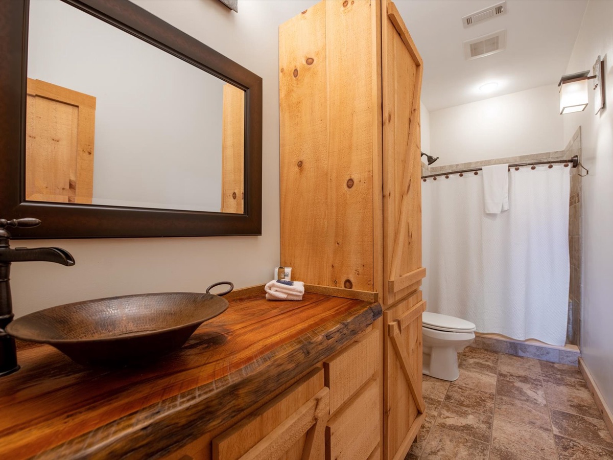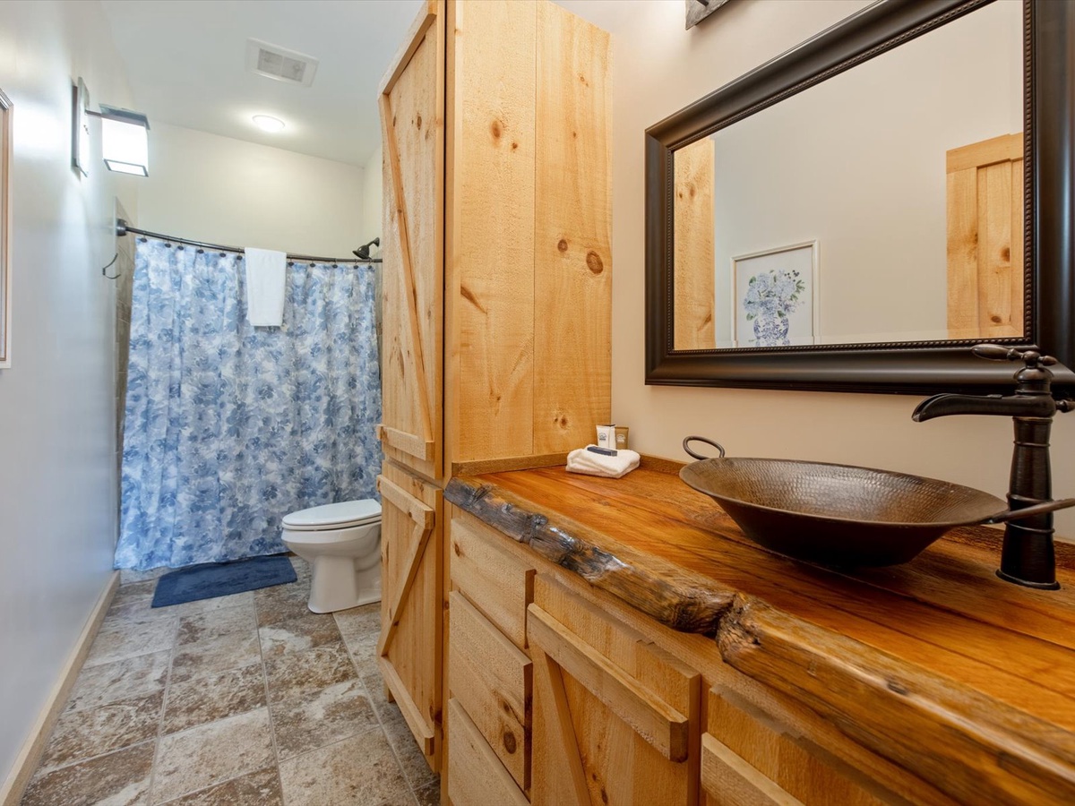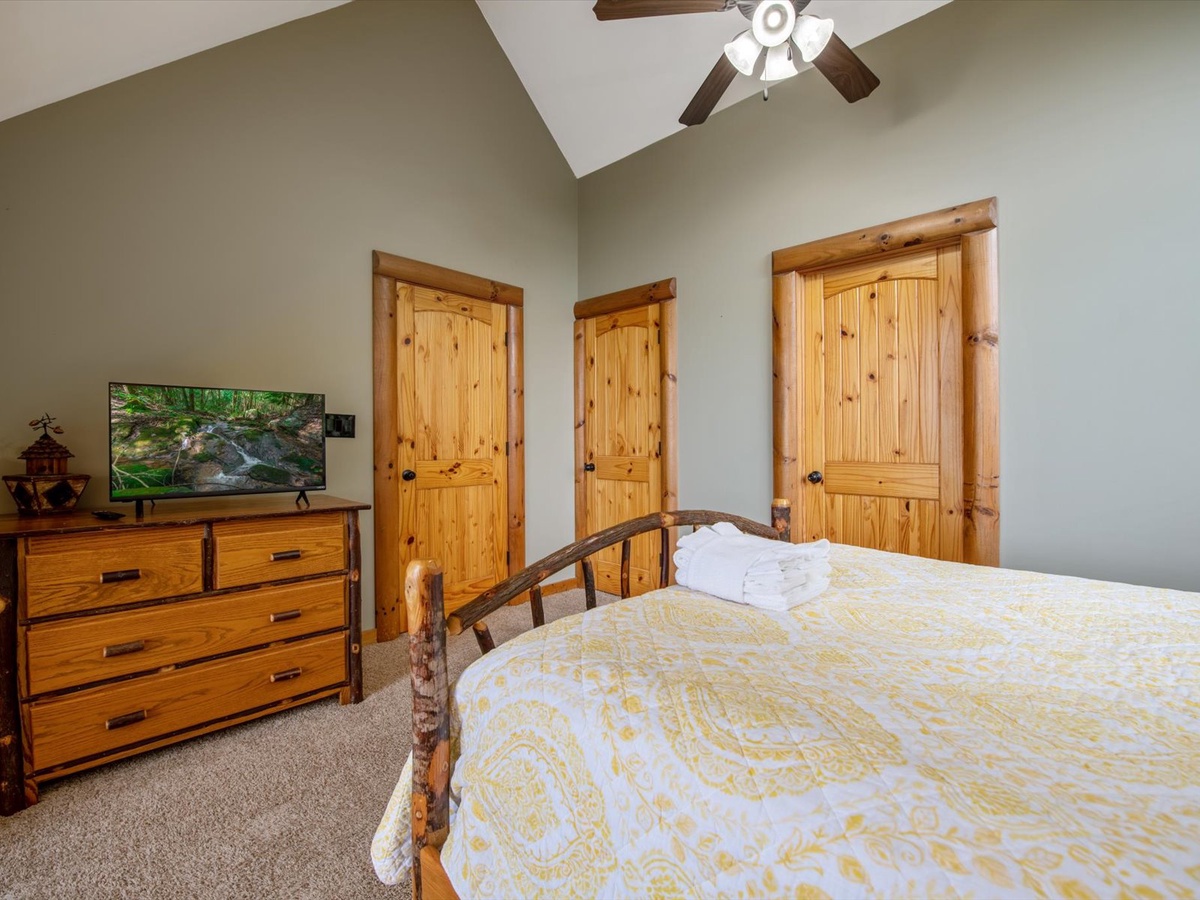 - One bedroom has a Queen bed with 32" TV and private bathroom with tile shower
