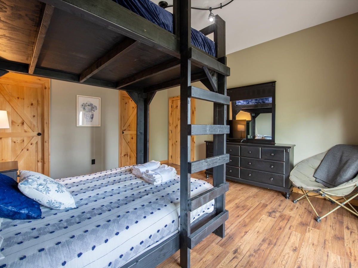 - Second bedroom has a queen over queen bunkbed with 32" TV and private bathroom with tile shower
