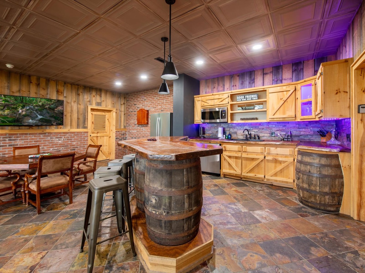 Recently remodeled and updated, boasting a one-of-a-kind firepit area and increased occupancy of 14! New game room attractions and furnishings throughout. Don't miss out on all of the new attributes at this beloved cabin.