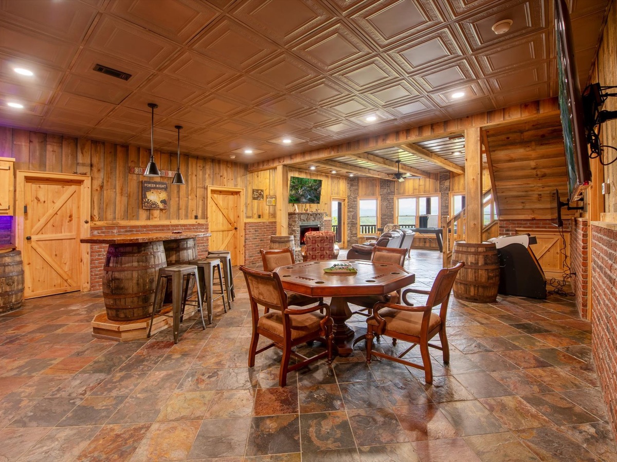 - Golden Tee arcade, poker designed card table, foosball, shuffleboard, dart board and a whiskey barrel cocktail table that is easily converted to a black-jack table