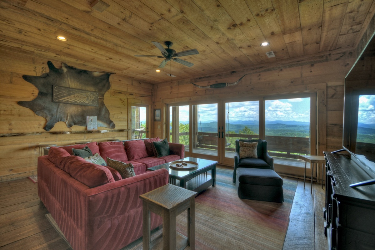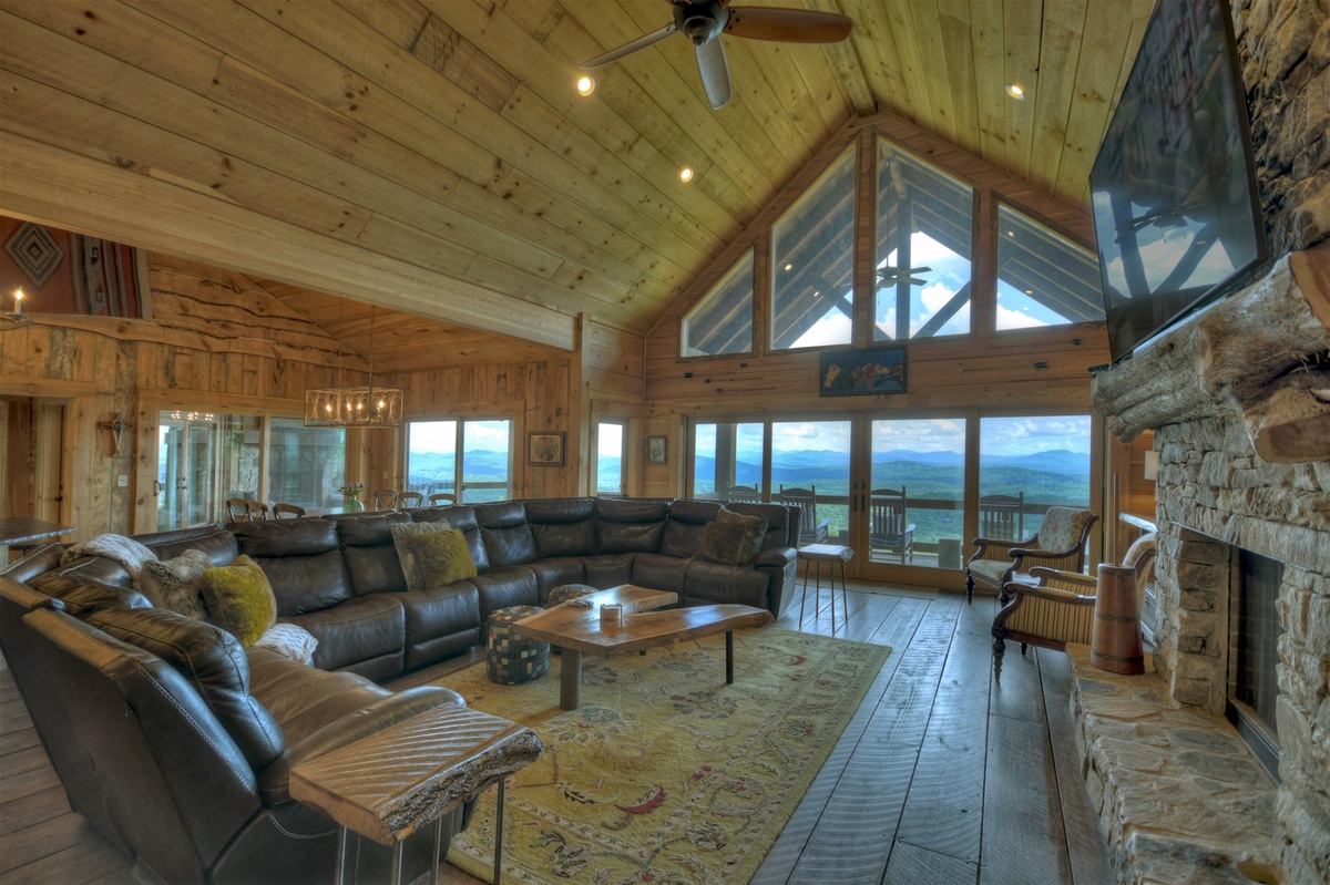 This is it! If you're looking for an over-the-top luxury Mountain View Cabin, HERE IT IS! Sky’s the Limit has it all with 3,300 SF of Living Area plus an additional 1,500 SF of covered Outdoor Living / Deck. There's no better place to find yourself than at the front door of this 19th century cabin with all modernconveniences that is simply the epitome of luxury. Put your key in the door and walk into soaring cathedral ceilings and dignified architectural touches.