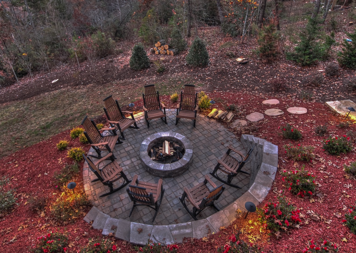 - Outdoor 65” TV with sound system and comfortable seating over a gas fireplace (currently inoperable)