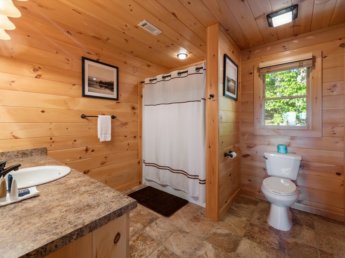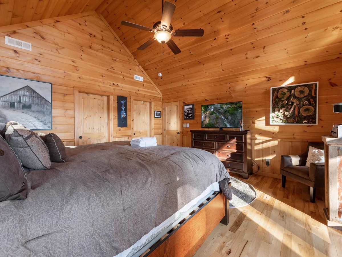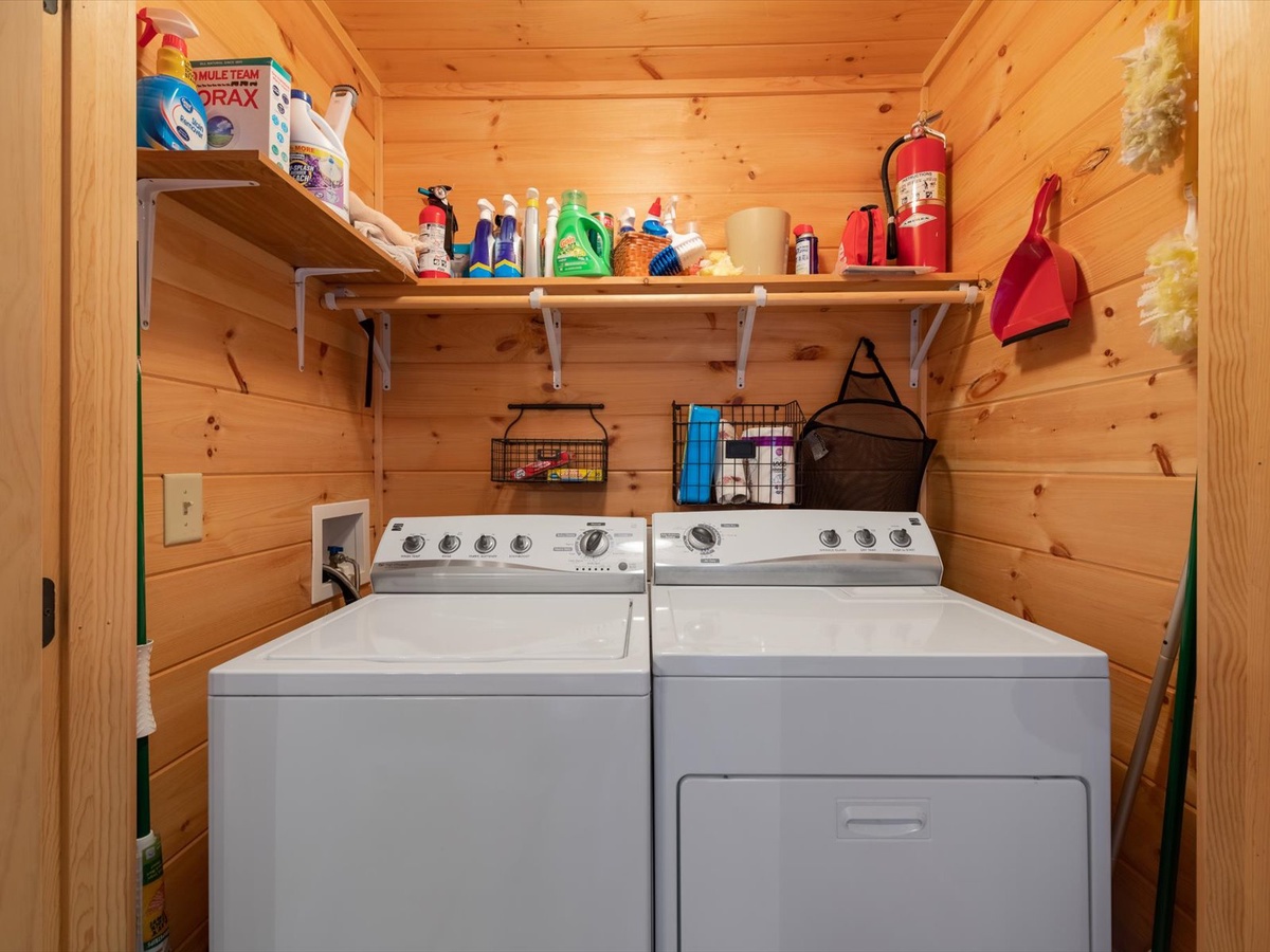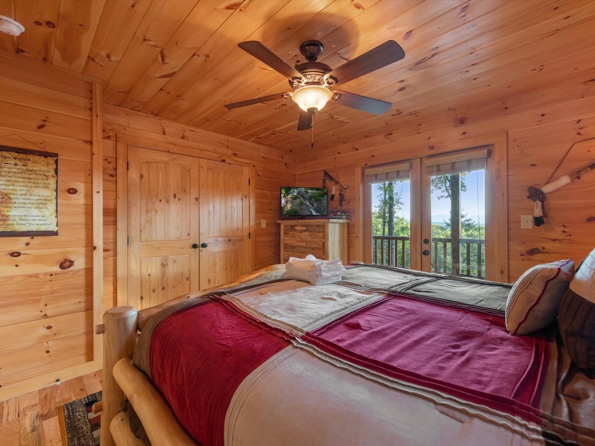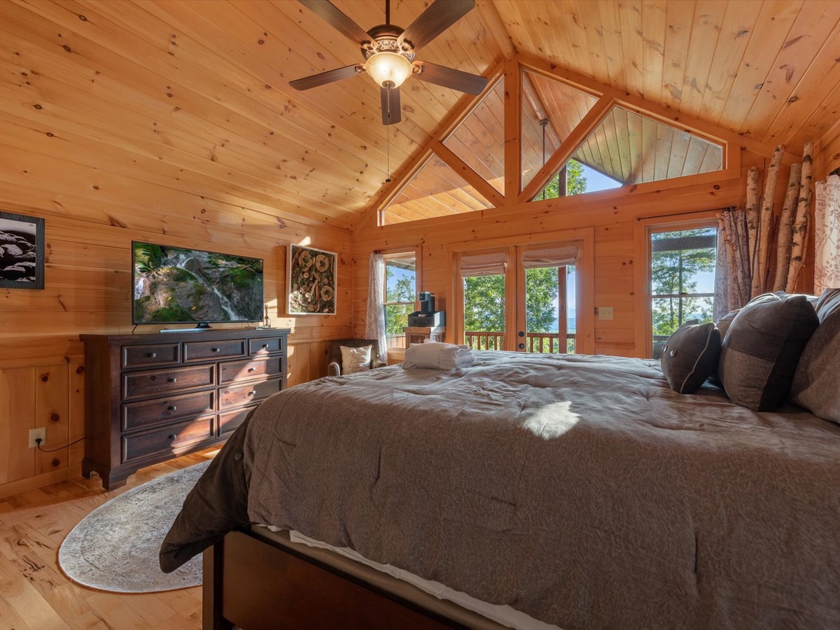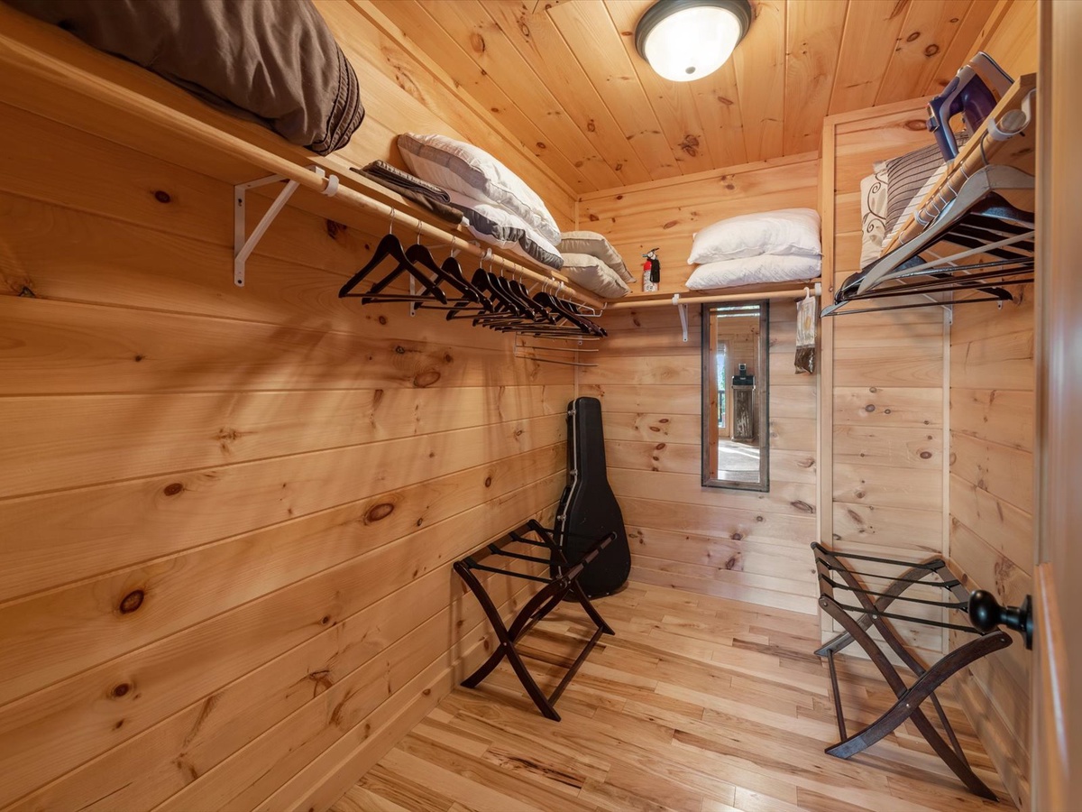 Off the kitchen is where you will find a king bedroom with deck access. Also, off the kitchen is where you will find a shared full bathroom with washer and dryer. Upstairs is a loft work space, a king bedroom with 44” TV, private full bath and a private balcony. Be prepared to let the cares of the world slip from your shoulders as you sip your morning coffee from the privacy and comfort of this private balcony.