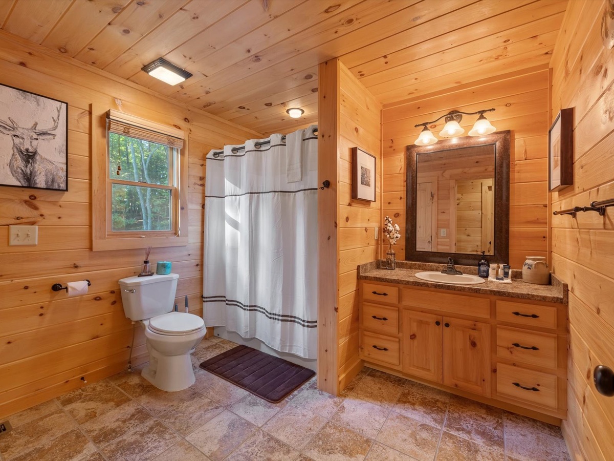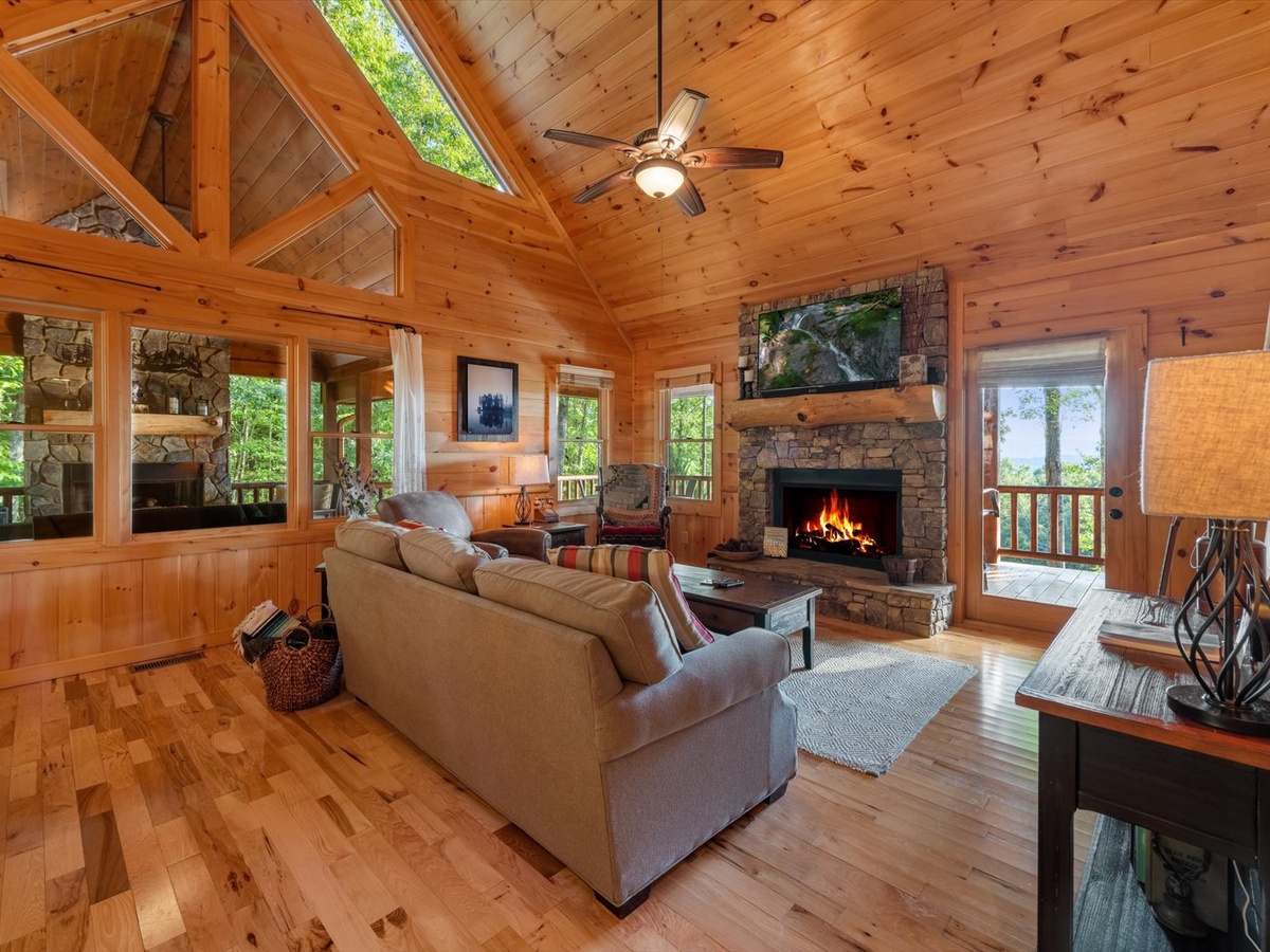 Entry level deck has a gas burning fireplace, gas grill and seating for 13. Lower-level deck has a bed swing, hot tub, seating for 6 and fire pit with a beautiful mountain view. Both decks have plenty of room for family, friends, and your crew to gather for any and all occasions.