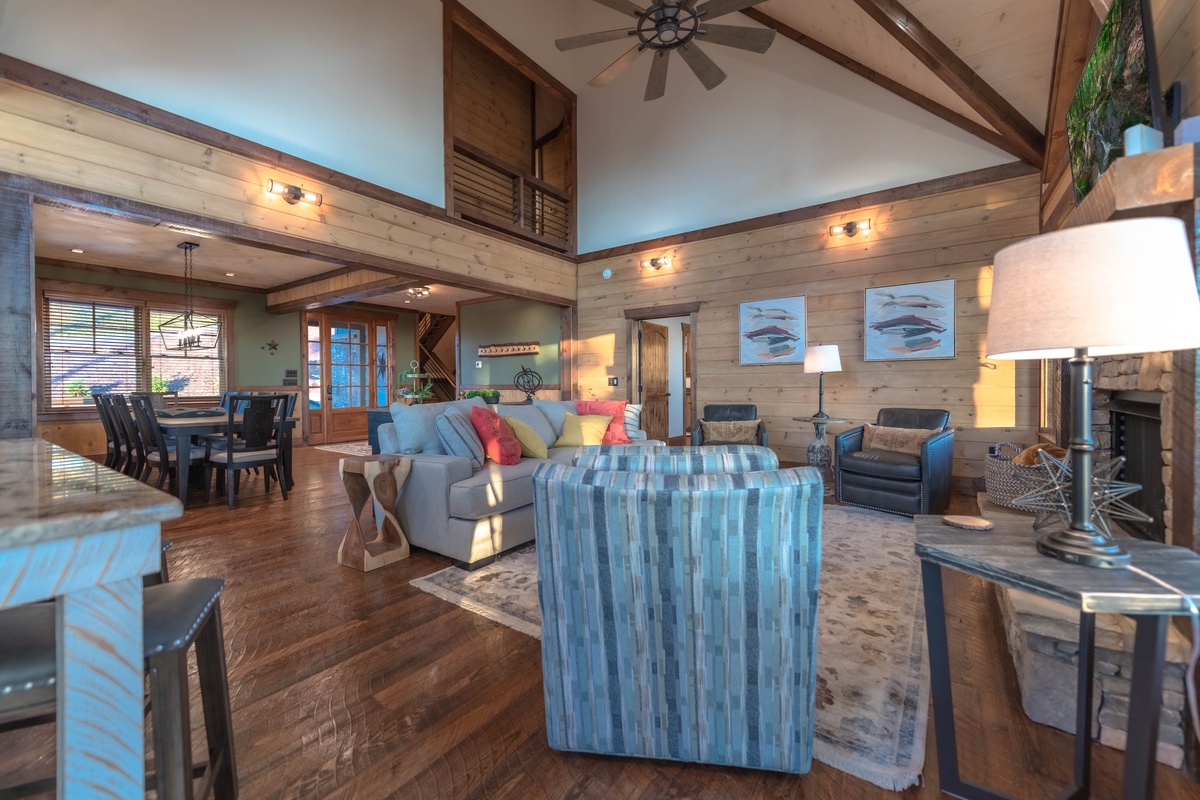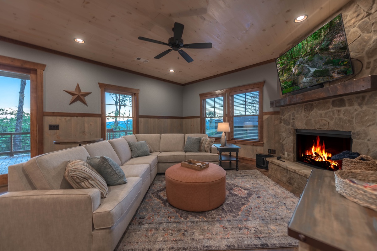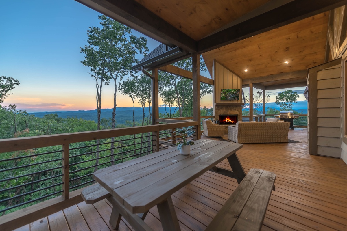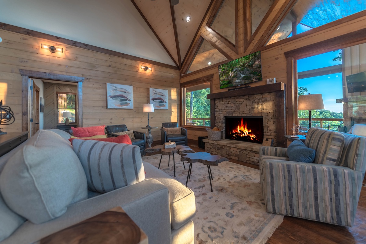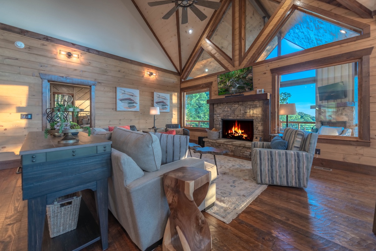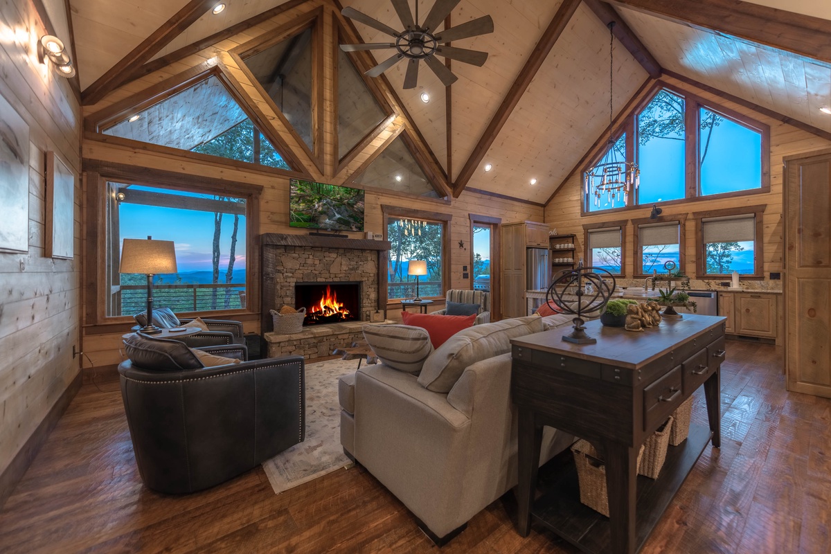 Elegance, style and sophistication are only a few words to describe this new construction Southern Star located in the beautiful gated community of Blue Ridge Heights. Minutes from downtown Blue Ridge, Southern Star is a 5 bedroom 4.5 bath luxurious property with unbelievable views that comfortably sleeps 19 guests.Â