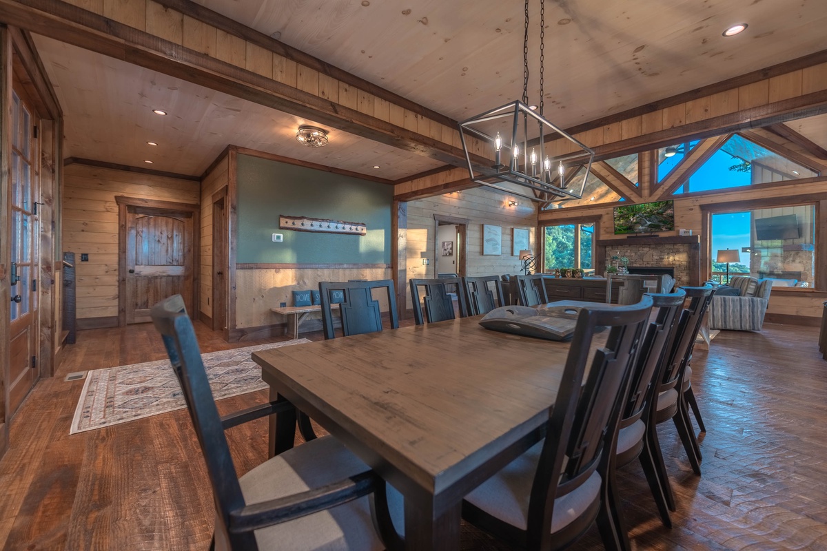 With an open floor plan and vaulted ceilings throughout, as you step into this lovely mountain getaway, be prepared to be blown away by the modern style and mountain views as you gaze for days and take in the fresh mountain air and let your stress be swept away. Granite countertops, hi-top bar with seating for 3, stainless steel appliances, and farmhouse sink in the kitchen, seating for 10 as you relax and enjoy the view and sunrise for breakfast or sunset for supper.