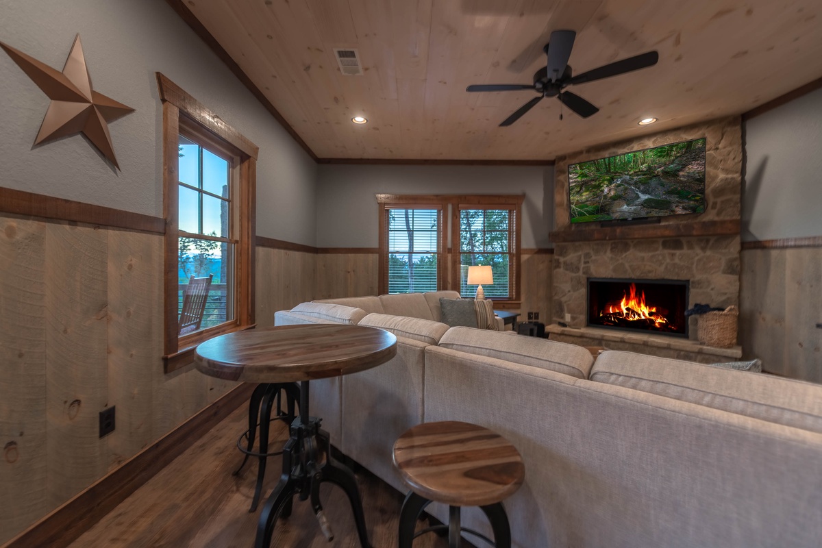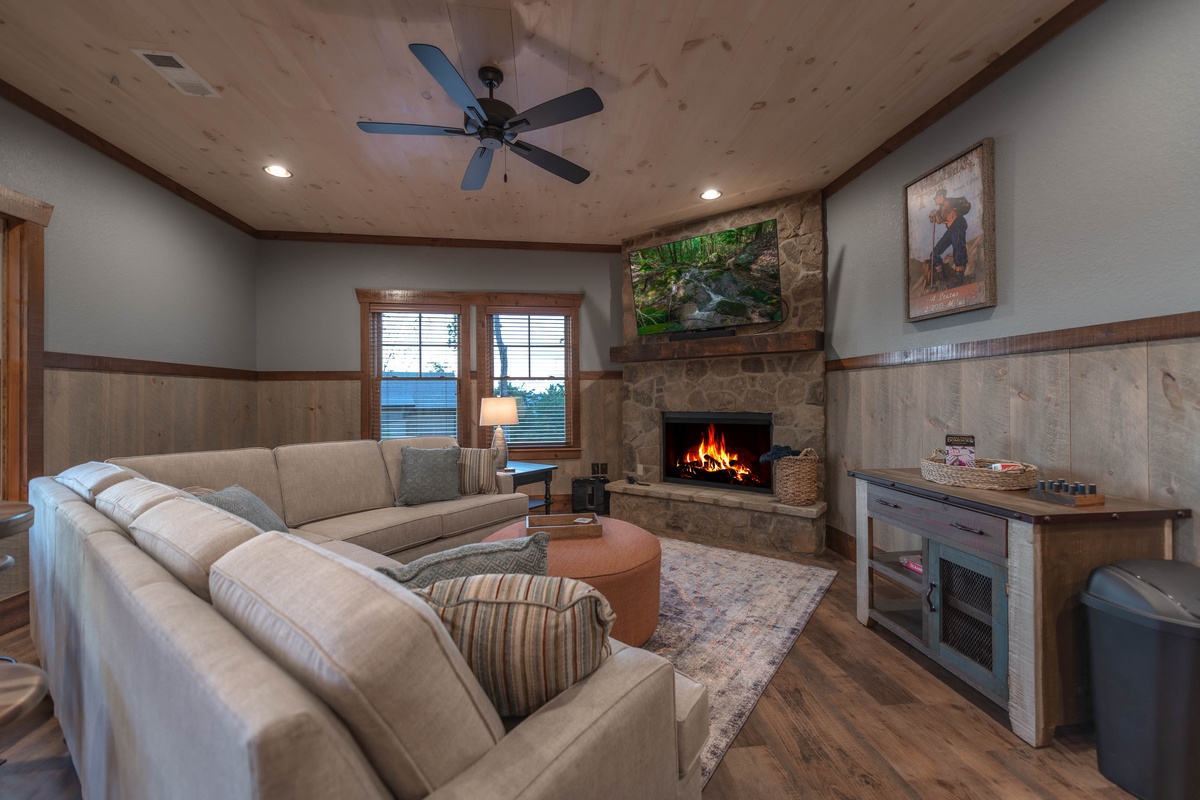 - Living Room with Gas Fireplace and 65" Flat Panel TV over Gas Fireplace