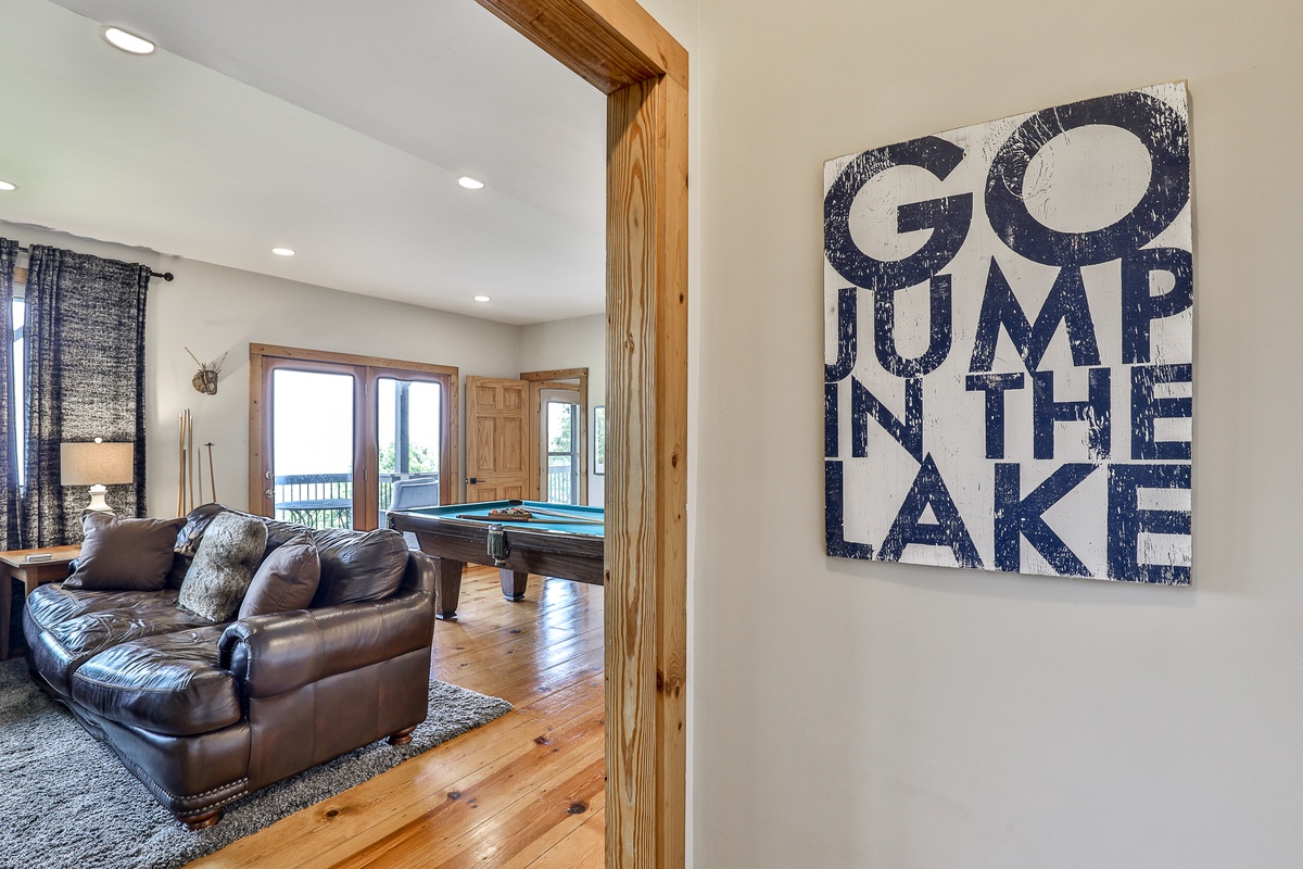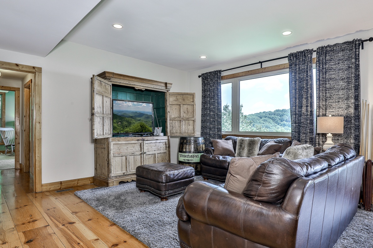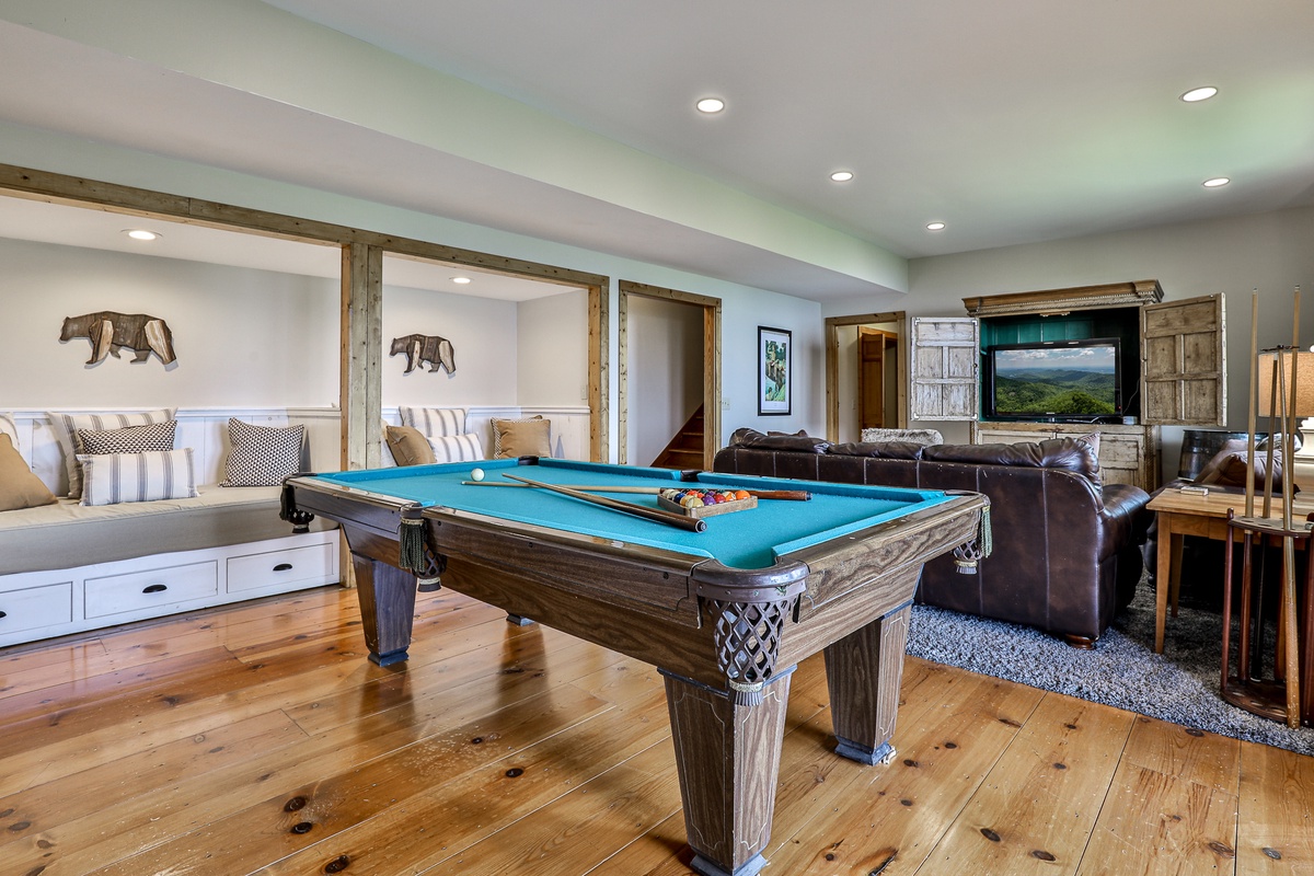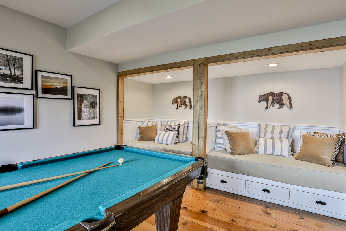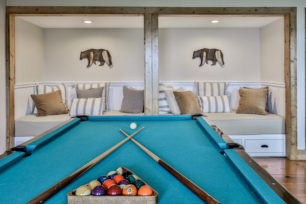 - Recreation room boasting a pool table, big-screen TV, and two single daybed bench seats