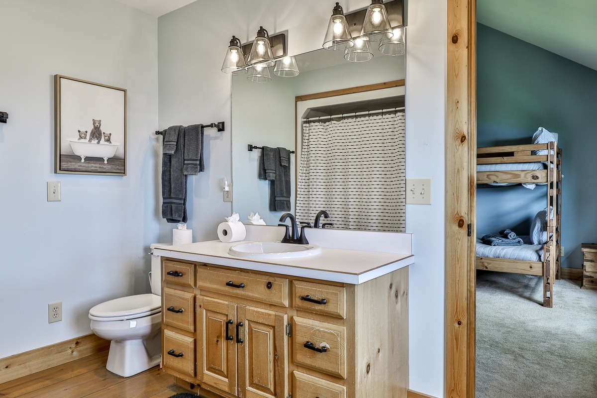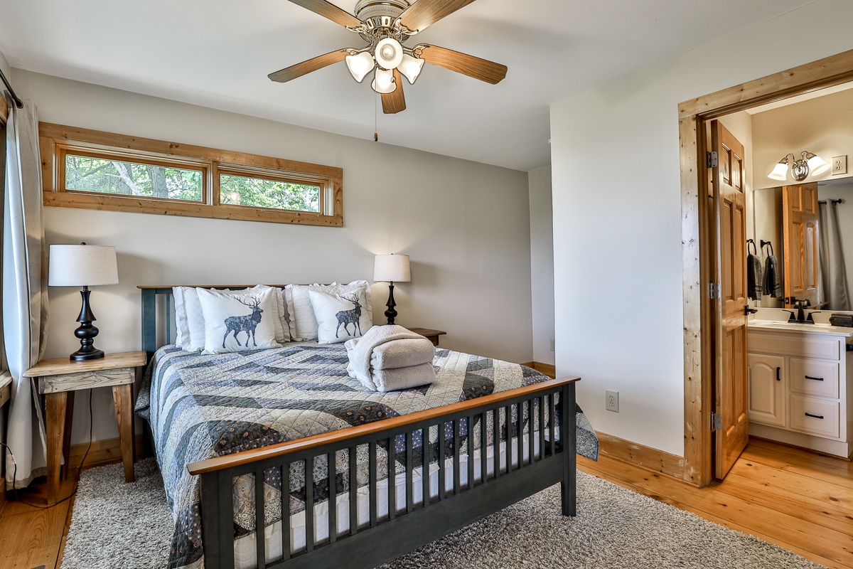 - King bedroom and a second bedroom with a double/twin bunk, sharing a full bath