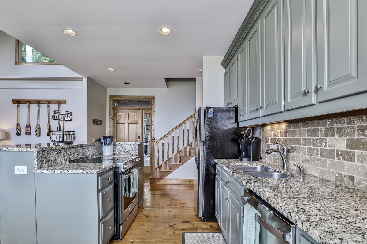 - Gourmet kitchen equipped with stainless steel appliances and a Keurig coffee maker