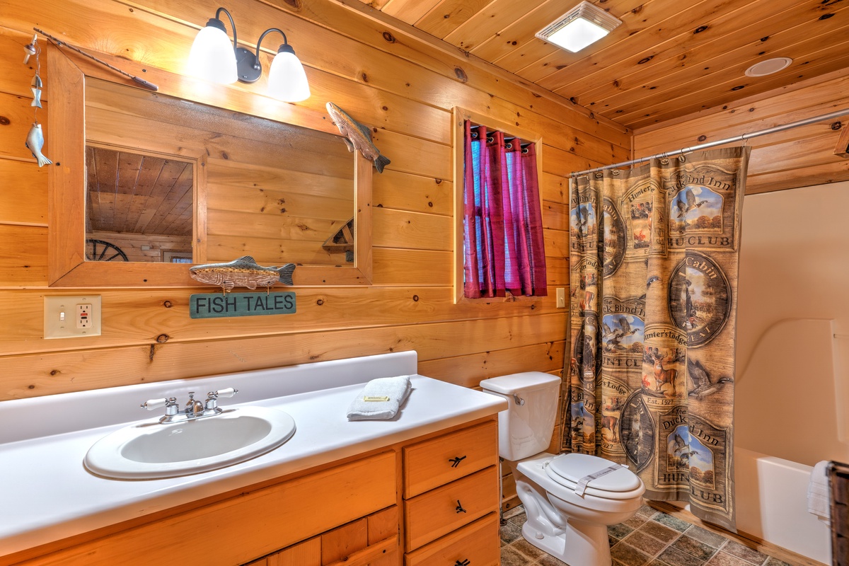 Bordered by the United States National Forest, Squat and Gobble offers unparalleled privacy and a front-row seat to nature's wonders. The cabin's unique décor reflects generations of North Georgia Mountain heritage, featuring tributes to iconic North American wildlife like speckled trout, deer, elk, and, of course, the star of the show—the turkey.