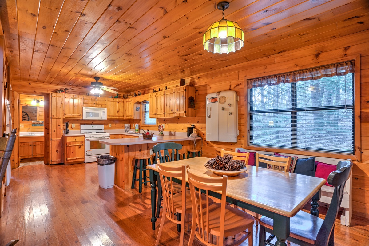 For larger groups, consider renting the neighboring Bucksnort Lodge, just a two-minute walk away. Together, these cabins offer the ideal setup for those who want to stay close, but not too close. Squat and Gobble provides exceptional value, offering a delightful cabin experience at an unbeatable price.
