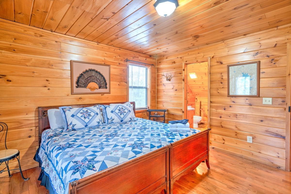 Squat and Gobble is within walking distance of Lake Blue Ridge and the Toccoa River. A short drive will take you to the Toccoa Riverside Restaurant, famous for its fresh, local trout dishes. You’ll also find tubing, fishing, and other outdoor activities just a stone's throw away. This cabin is the perfect place to unwind, escape the everyday hustle, and immerse yourself in the natural beauty of Blue Ridge, GA.