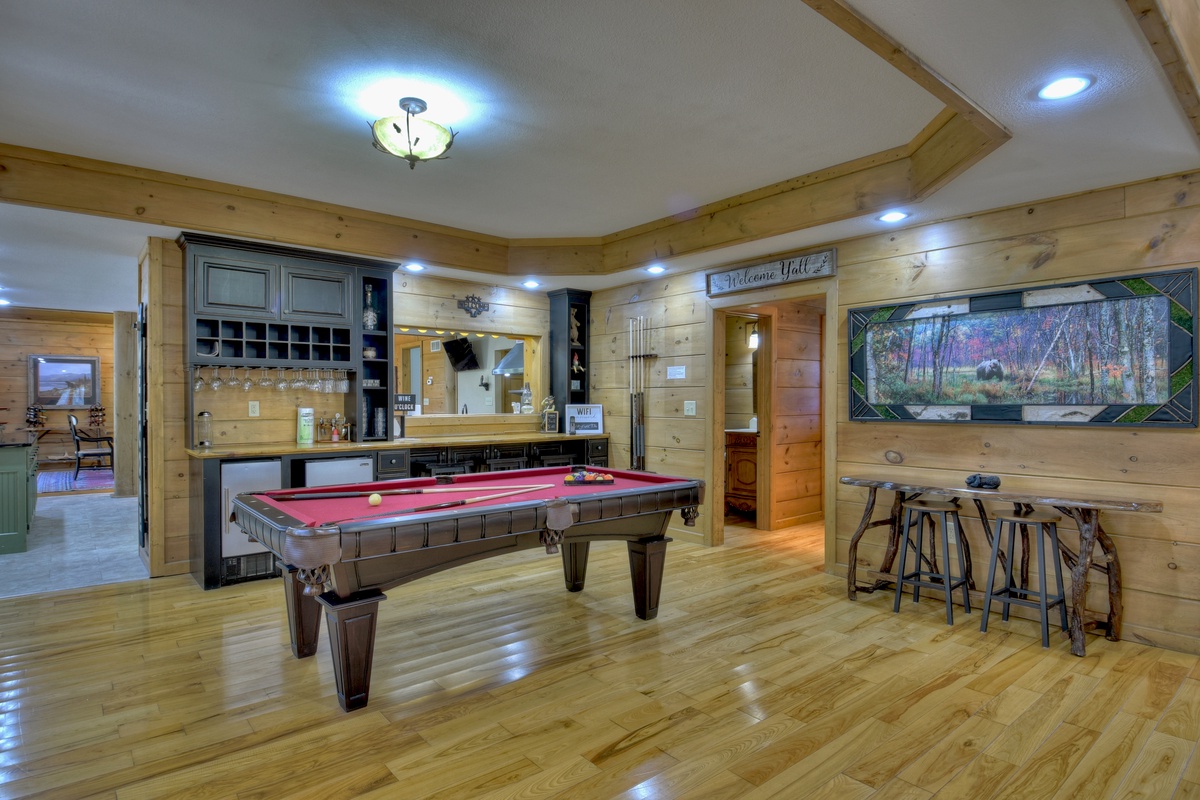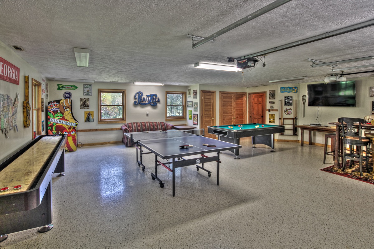 - Game room with: pool table, card table, ping pong, and shuffleboard, & pac-man game