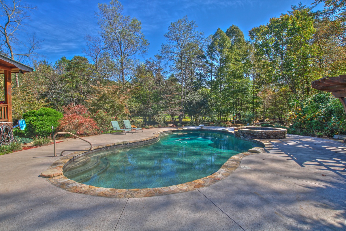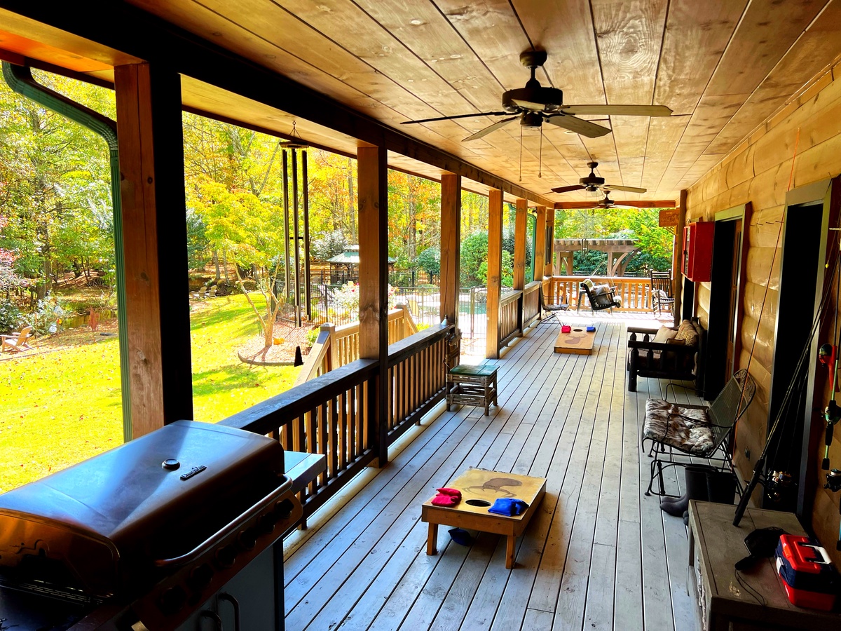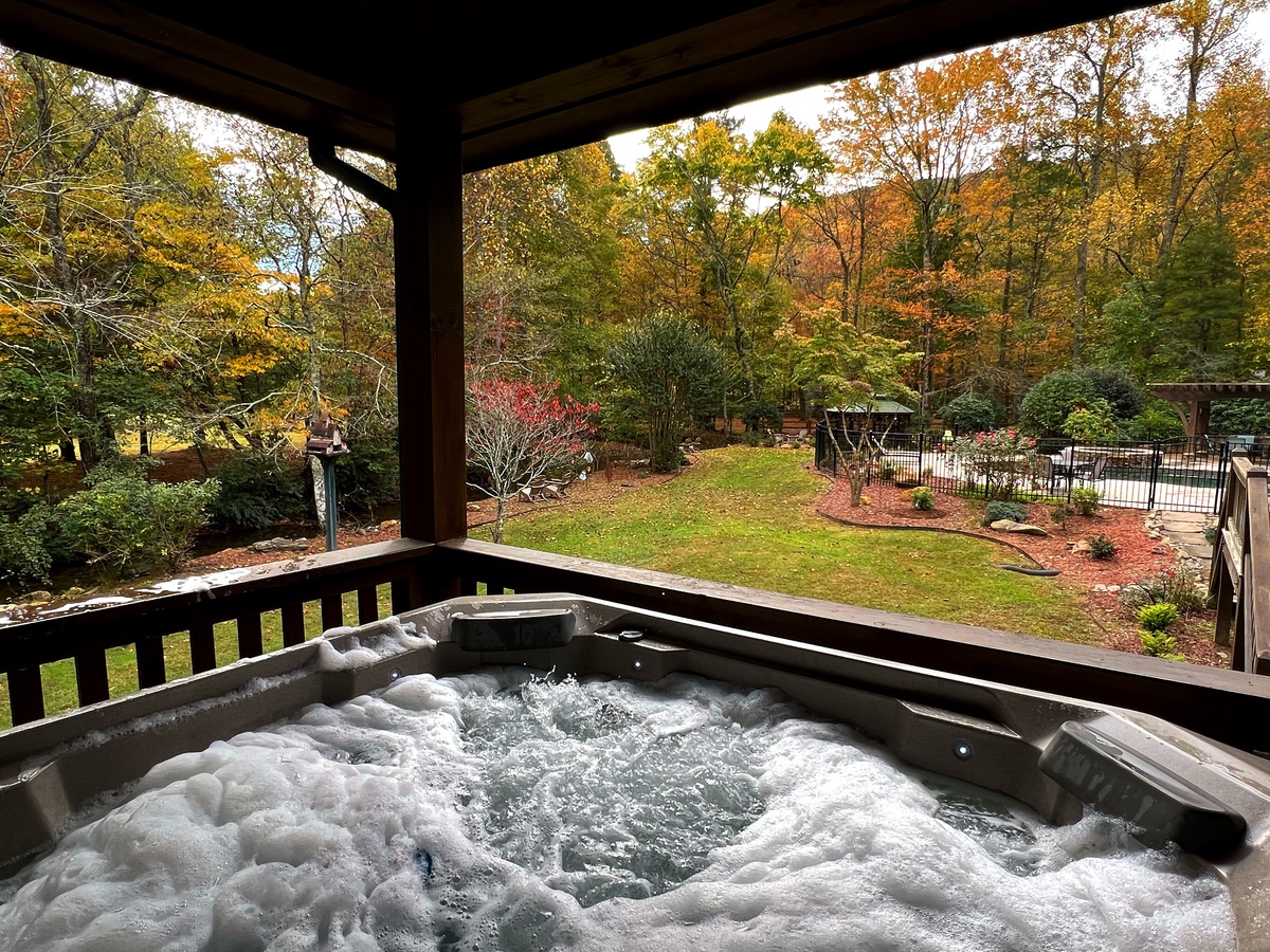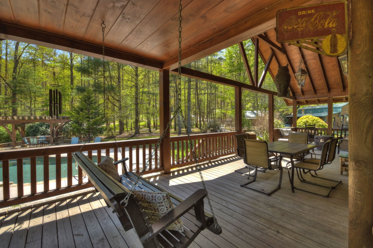 With 300 ft on Stanley Creek, this trout stream, which is fished with artificial lures and flies only, is sure to impress any fisherman tale. Our guests have caught trout up to 24 inches just 50 feet from the back door!! With three master king suites, a queen suite, bunkbeds for the kids and a separate guest house that sleeps four with a full bathroom, there's plenty of room for all. Introducing a brand new play structure October 2023! This property also features a gated, inground, saltwater pool (diving board has been removed), a connected, smaller pool with jets and an outdoor party gazebo. On the front deck off the King master suite, you will find an oversized hot tub where guests can listen to the creek as you sip on your favorite wine and converse with family and friends throughout the day into the evening. Book that corporate retreat, church group, or family reunion and be ready to entertain all with the outdoors as well as the converted garage game room indoors.