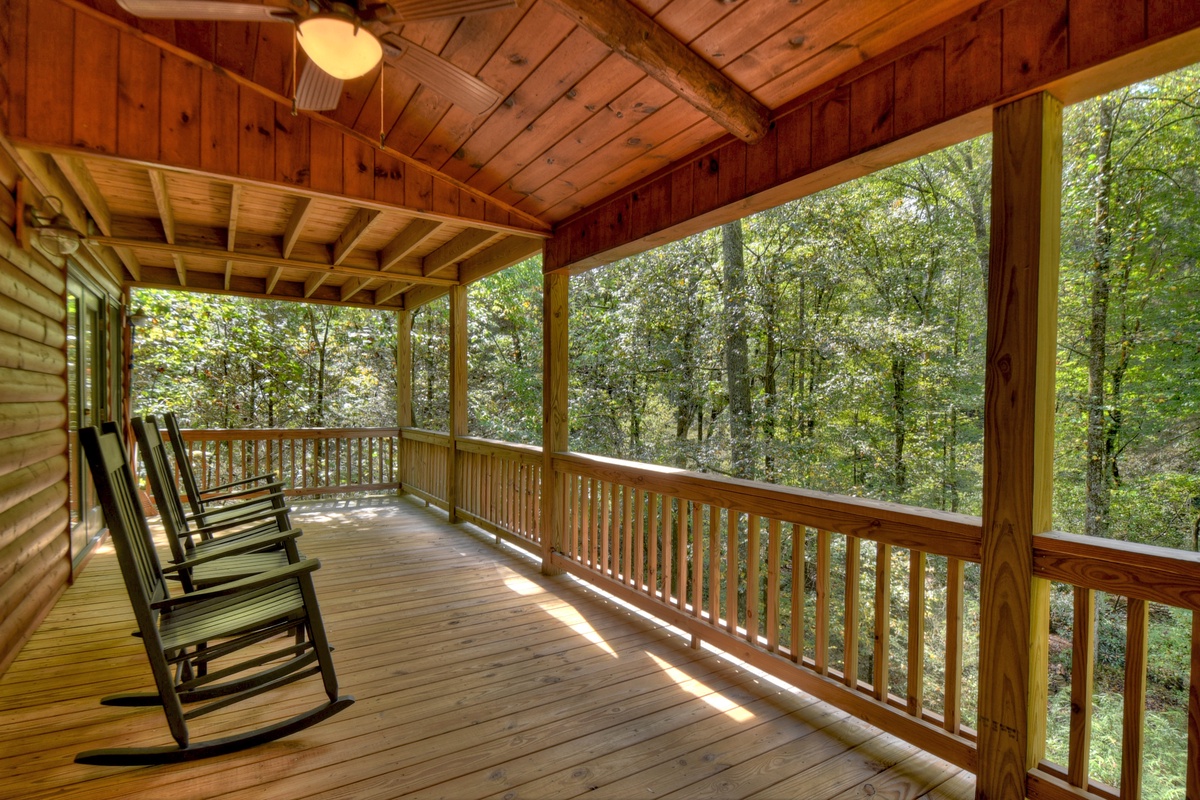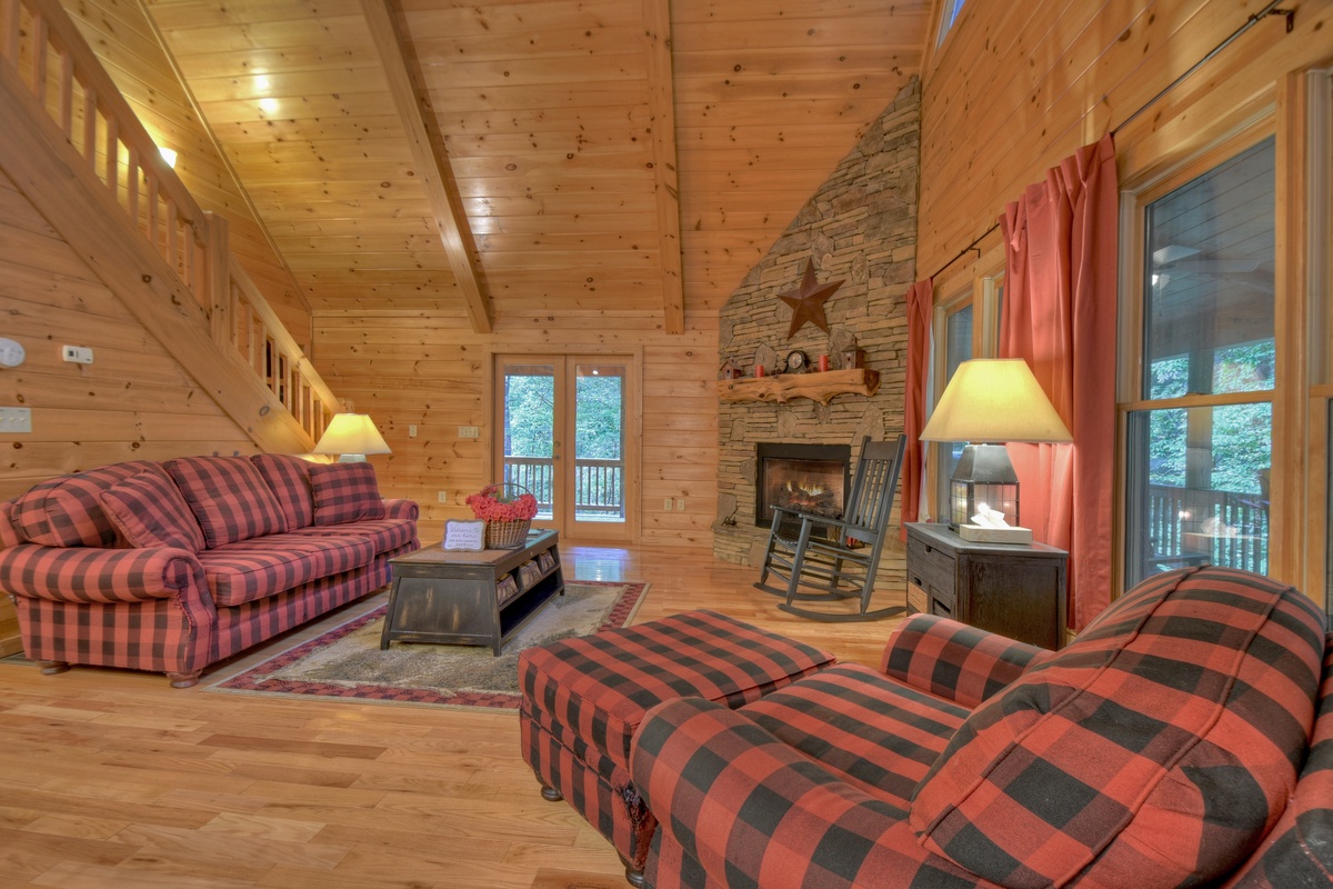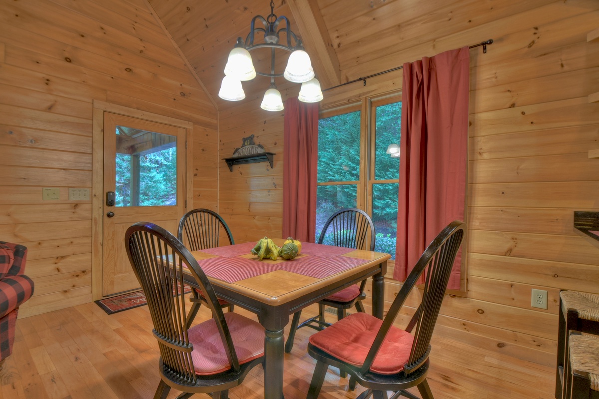 Be sure to enjoy the crisp fall evenings outdoors on the 3-tiered wrap around deck or cozy up by the firepit roasting smores and telling fun tales of the past and exciting plans for the future. This North GA cabin is an excellent location for the annual fall festivals, in both Ellijay and Blue Ridge, and gives coveted views of the leaf changing season, as you are surrounded by hiking trails and the restful sounds of nature.
