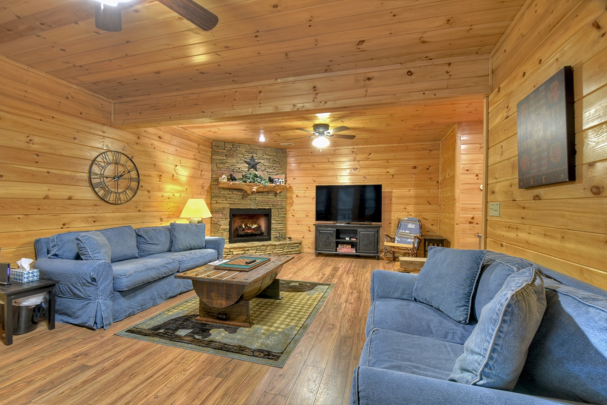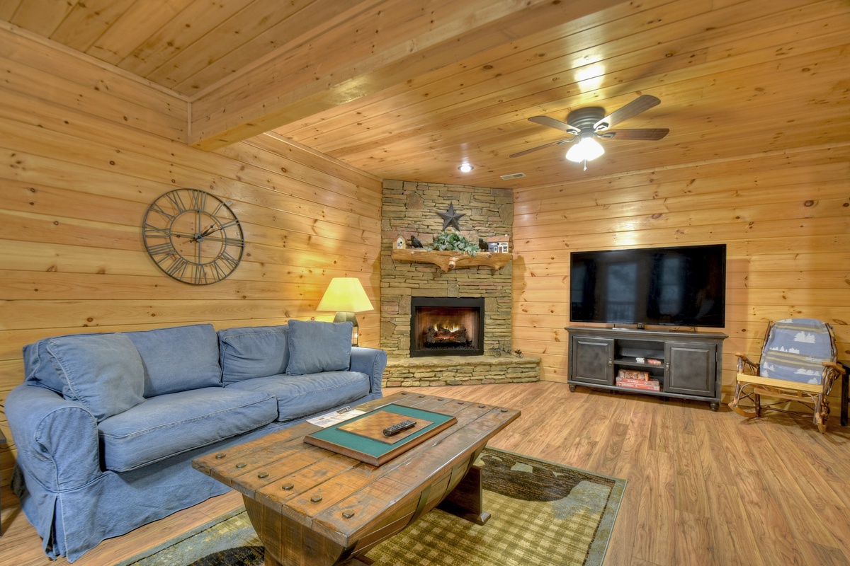 - Living room boast 43" TV over gas log fireplace