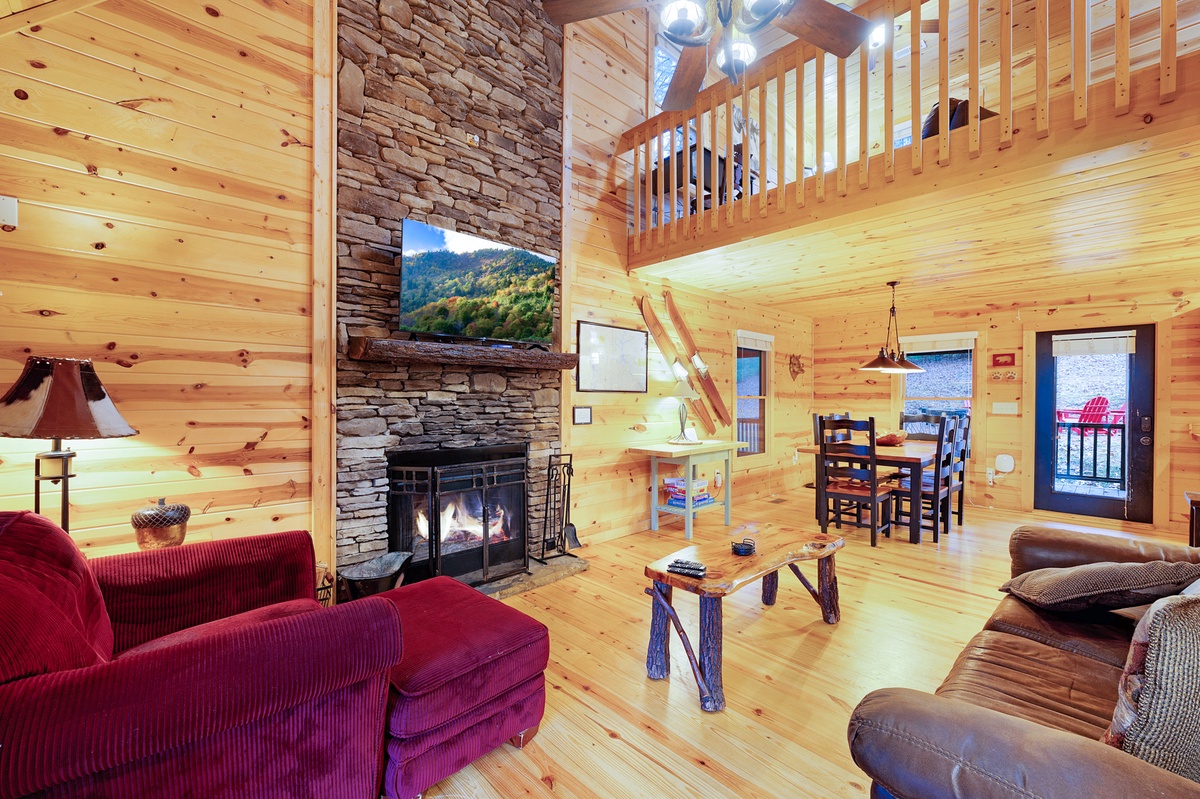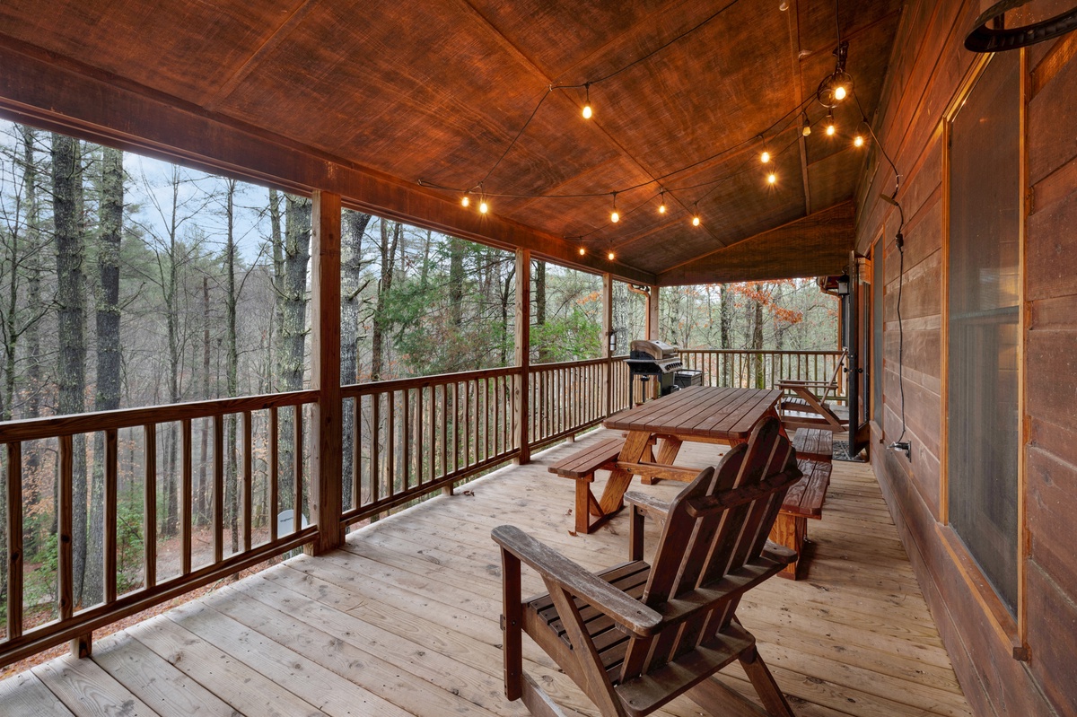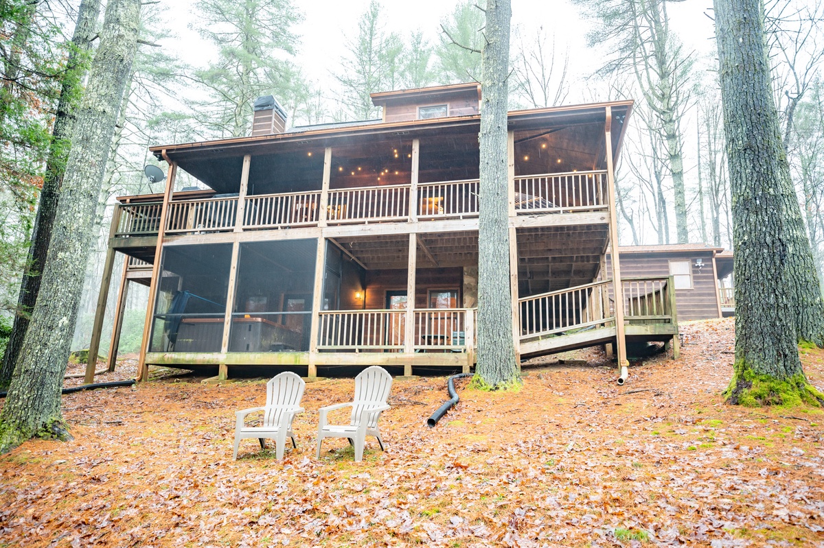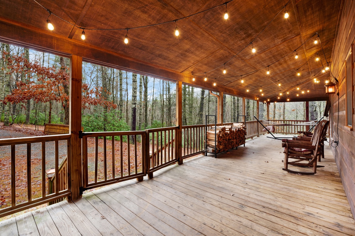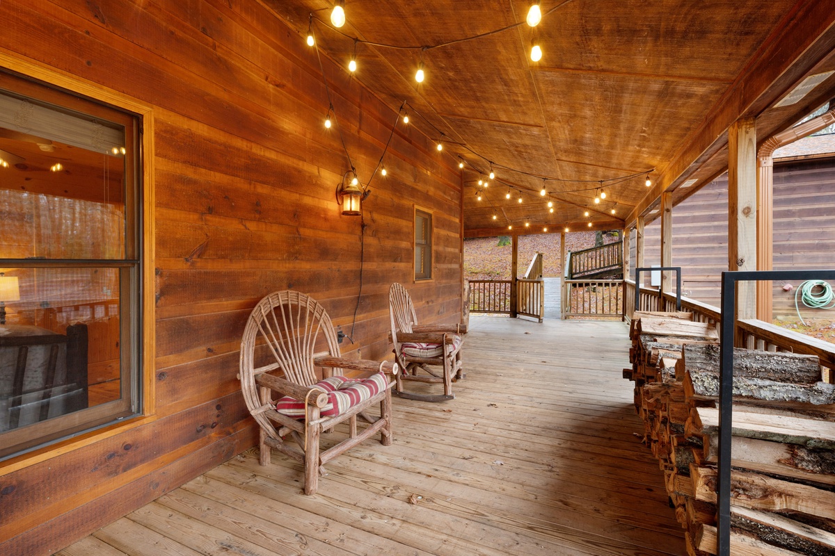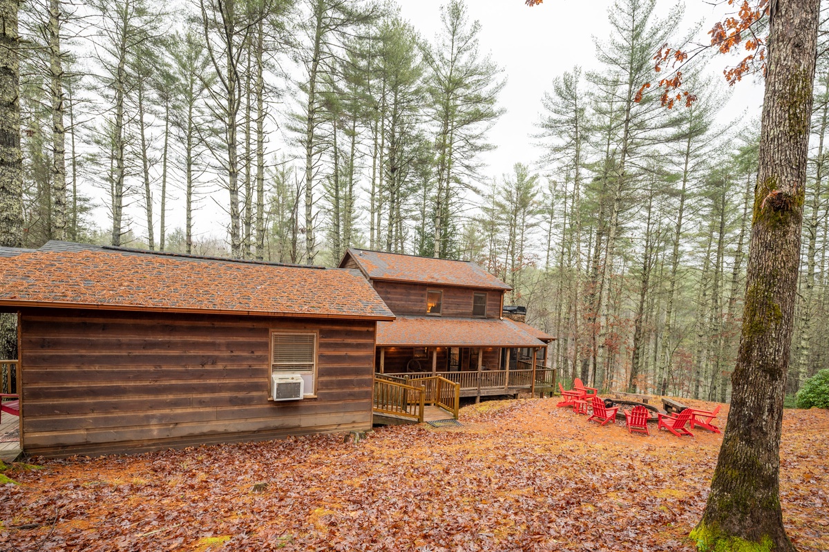 Nestled in a gated and secluded property, Storybook Hideaway is a quiet retreat from the hustle and bustle of daily life, perfect for gatherings of family or friends. The main cabin and detached cottage feature spacious outdoor living areas and ample seating to enjoy the wooded vistas, songbirds, and the frequent deer families that make our property home. As our ancestors knew, the best place to tell stories of your own is around a communal fire, and this property provides three options: a large outdoor firepit, recently regraded and graveled, and two wood-burning fireplaces. One is in a beautiful fully screened porch and the other in the cozy living room inside the cabin. The main cabin is entirely surrounded by a wide porch featuring mountain pioneer style furniture, a picnic table, and string lights. You can find more photos of the cabin on our Instagram page @StorybookHideaway.
