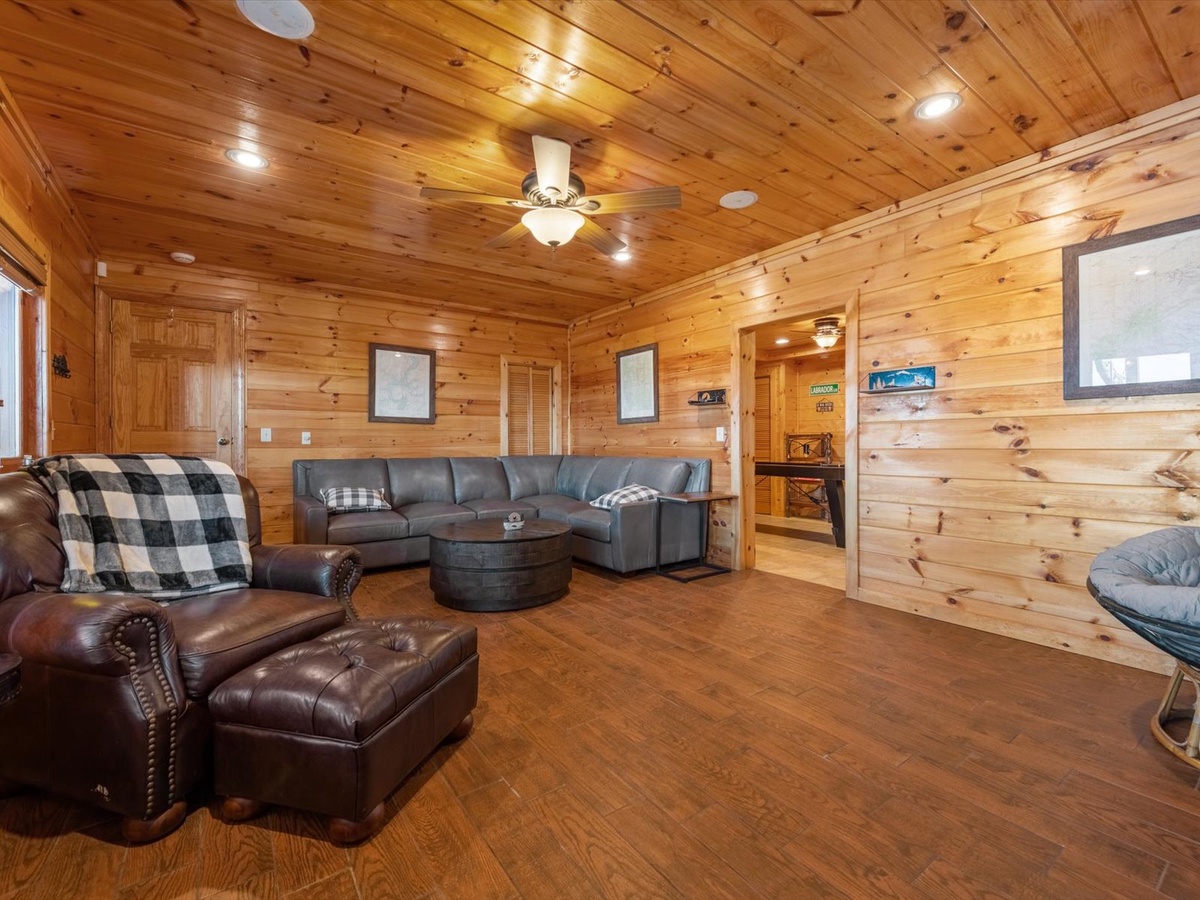 For those more inclined to relax in front of the television, the lower- level will suit your liking perfectly. With a gas burning fireplace to cozy up by and a TV to watch your favorite shows on, you will be spending your evenings blissfully content. For the gamers of the group there is an arcade, shuffleboard, and card table in the adjoining room. Challenge your family and friends to a competition with hours of entertainment.