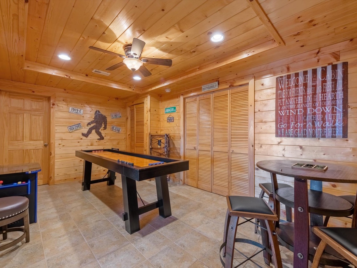 - Additional game room with shuffleboard, arcade, card table and board games. Corn hole for outside play stored in living room.