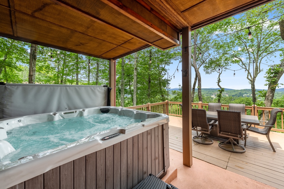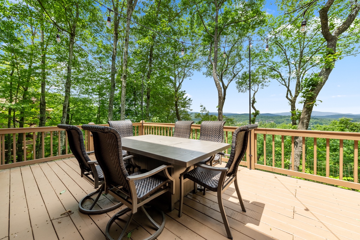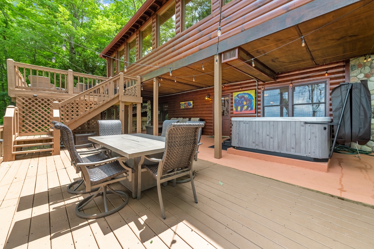 Though the interior has something for everyone, don’t forget the outdoors’ allure. Step out onto the deck for firsthand mountain views, with two gas fire pit tables for outdoor eating or lounging. Looking to enjoy the outdoors with a luxury twist? Soak in the inviting warmth that the hot tub offers, day or night relax your mind and body as you gaze on the sights of nature.