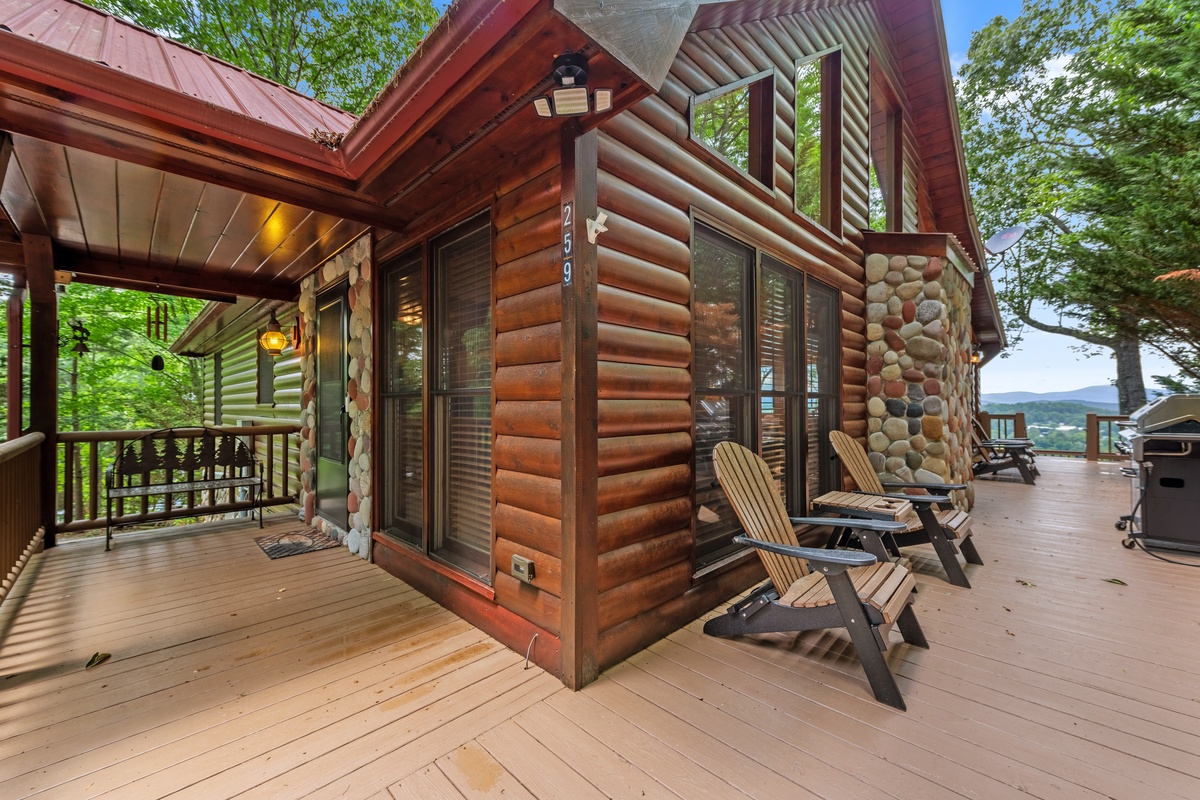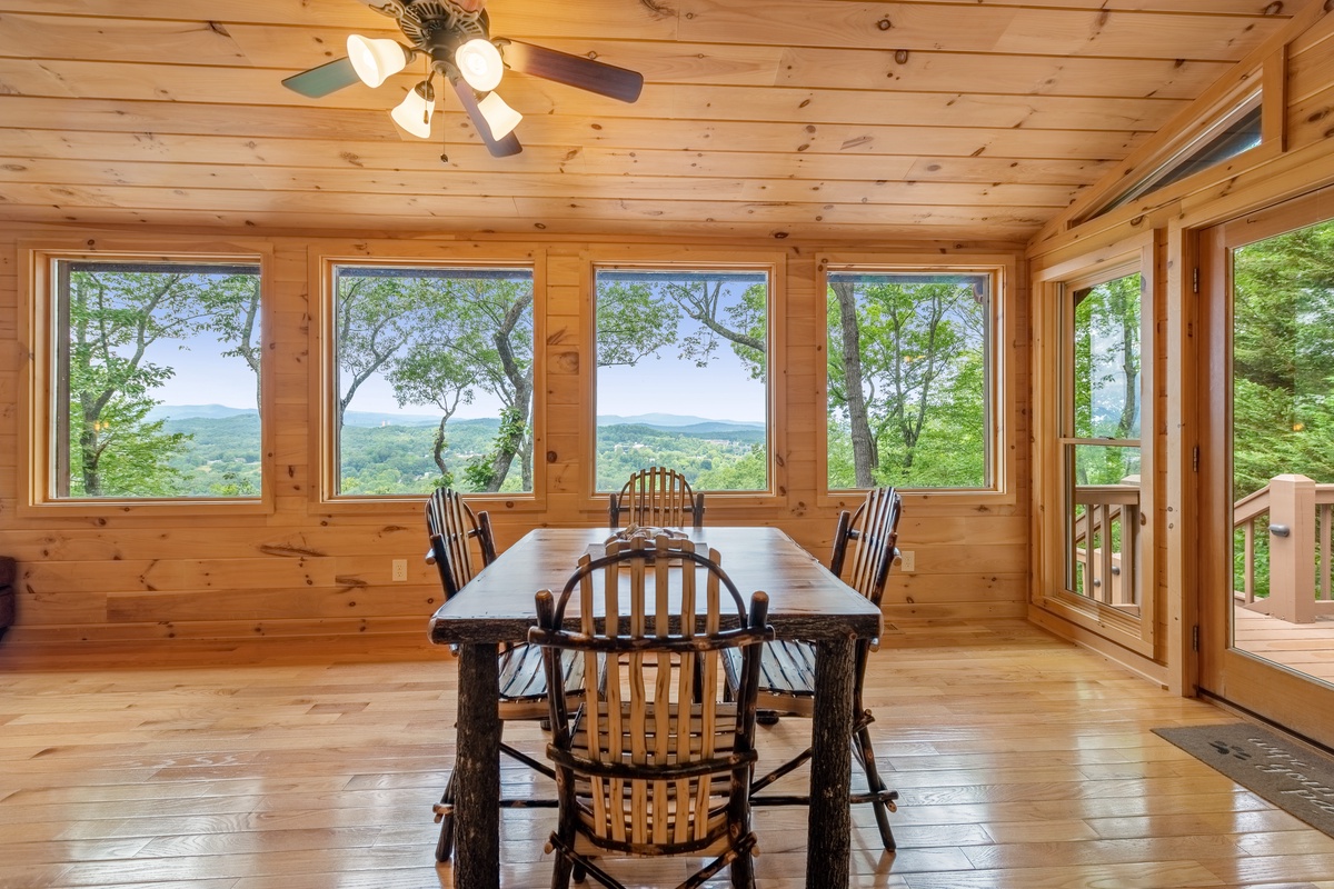 Finally! You have arrived at your vacation destination! Step out of your vehicle and into your vacation. Enjoy the crisp mountain air and the welcoming site of your home away from home. This cabin greets you with a wraparound deck and majestic views from every direction. Leave your stresses behind and indulge in all that the mountains of Blue Ridge have to offer you.