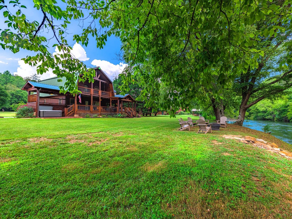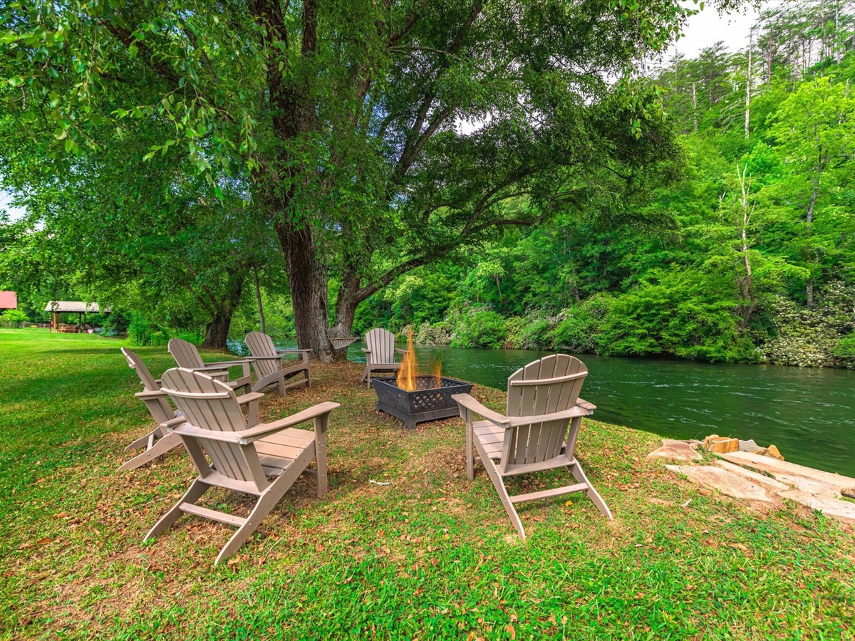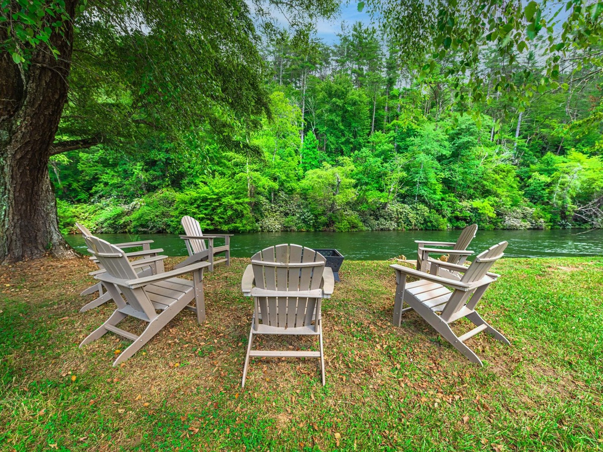 In the back yard, just feet from the Toccoa River are your lazy day hammock and fire pit. Here also is plenty of shore line to cast your fishing line for your chance at the seasonal trout dinner.