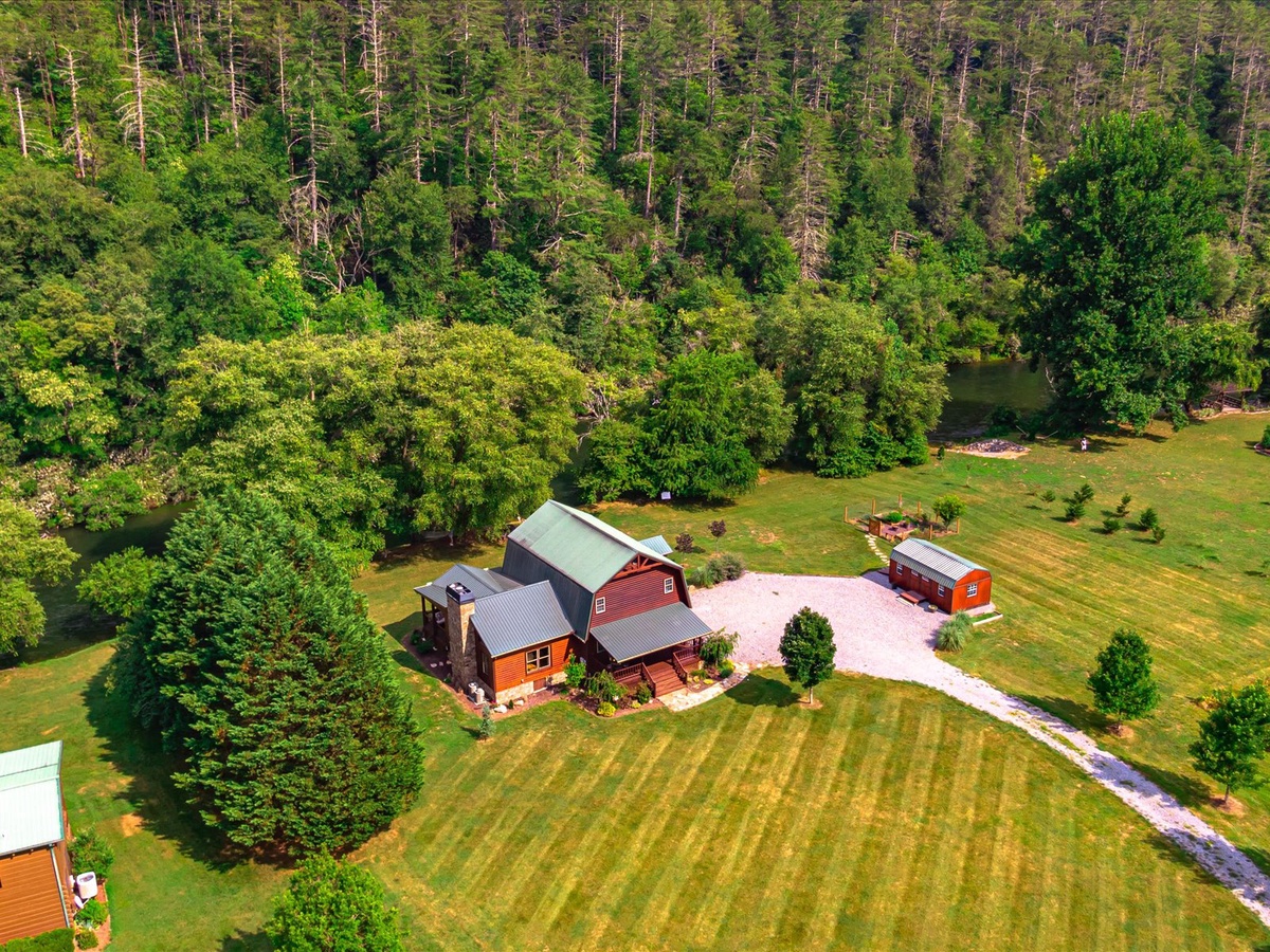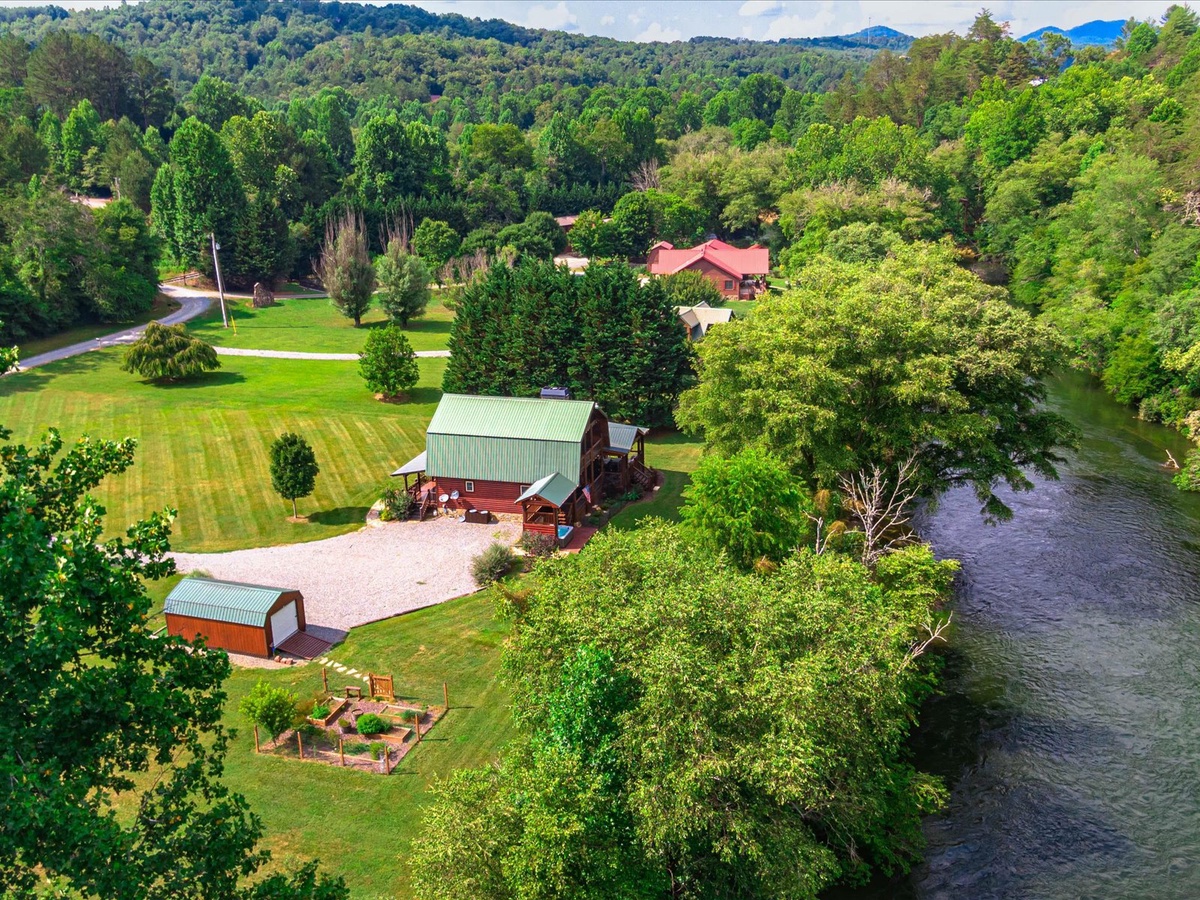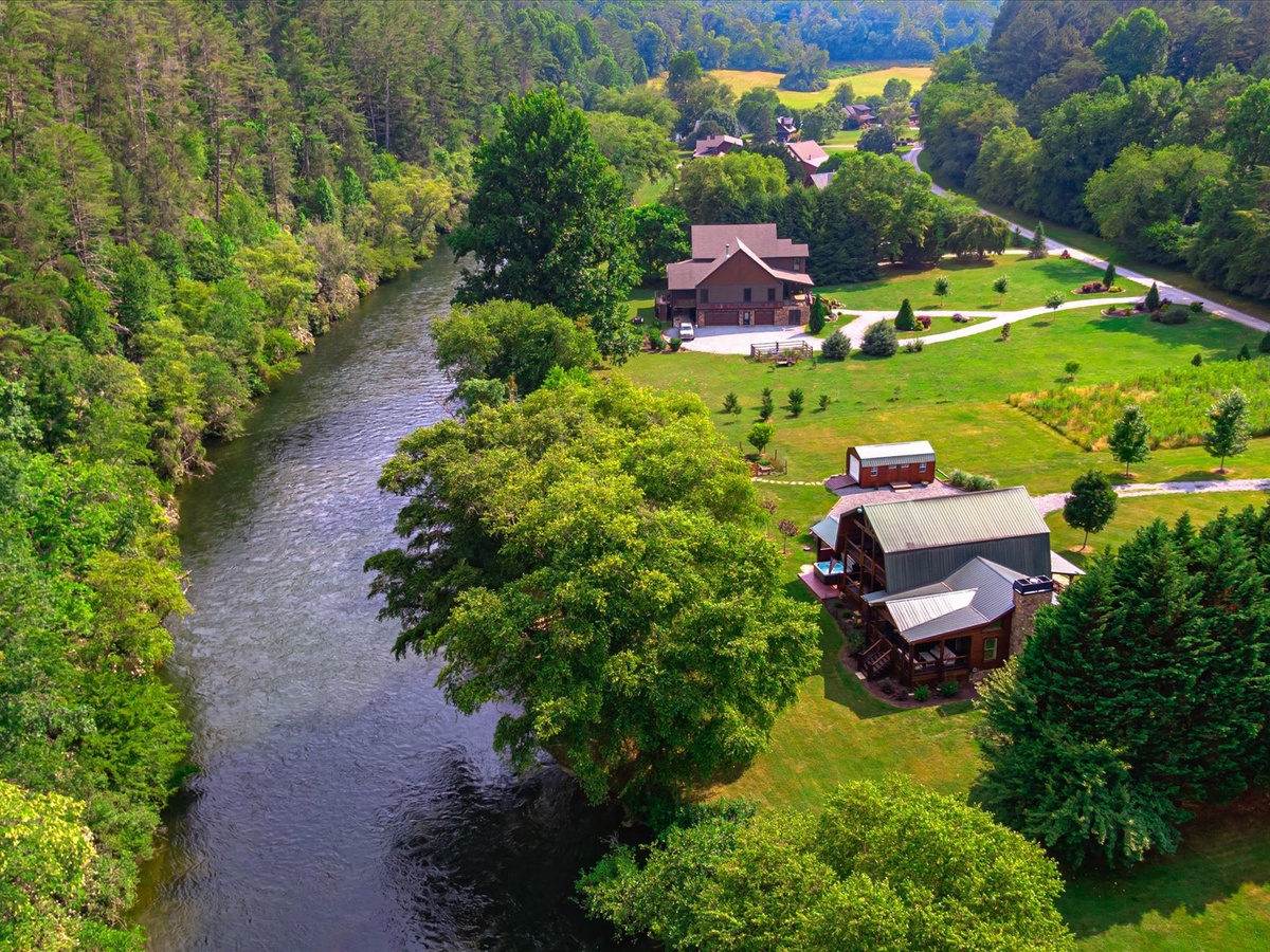 In the back yard, just feet from the Toccoa River are your lazy day hammock and fire pit. Here also is plenty of shore line to cast your fishing line for your chance at the seasonal trout dinner.