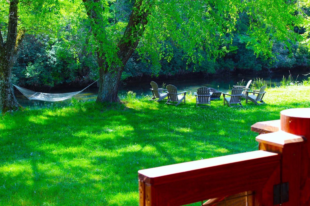 In a hammock, on a cool, green and shady day is where you should find yourself on the Toccoa River watching the day float bye and your worries drift away. The well shaded back yard with its fire pit located just feet from the Toccoa River is the place to be on your evening get aways.