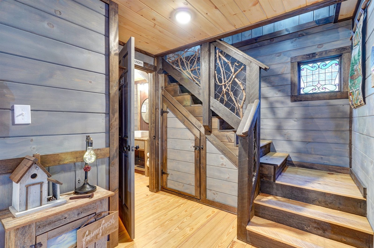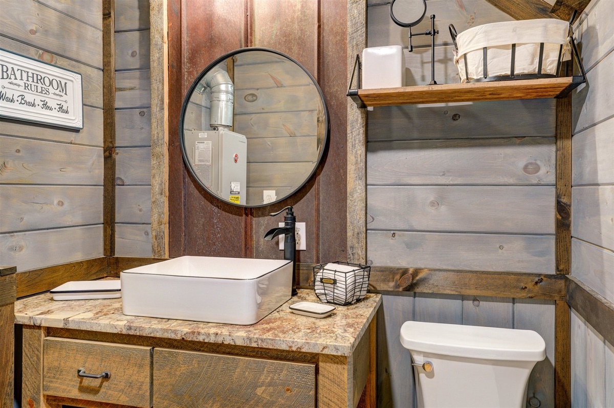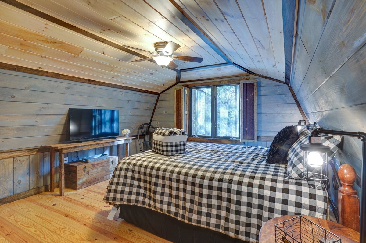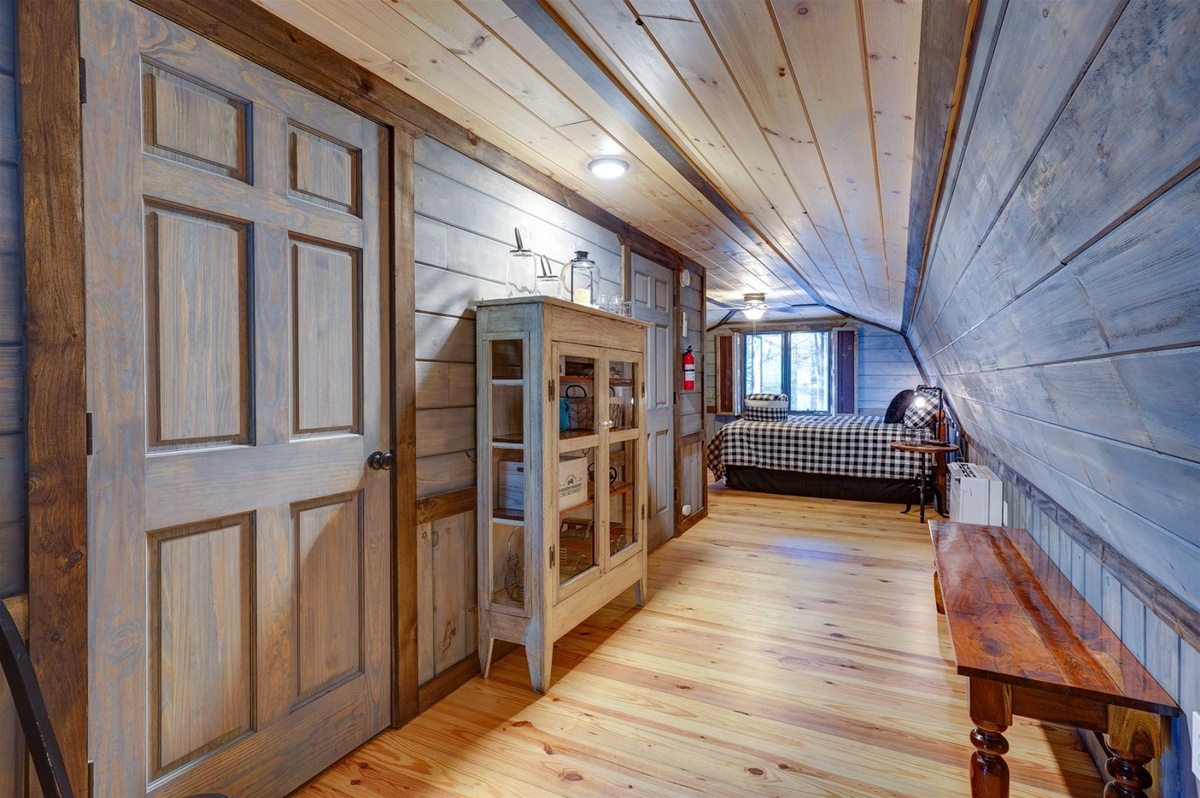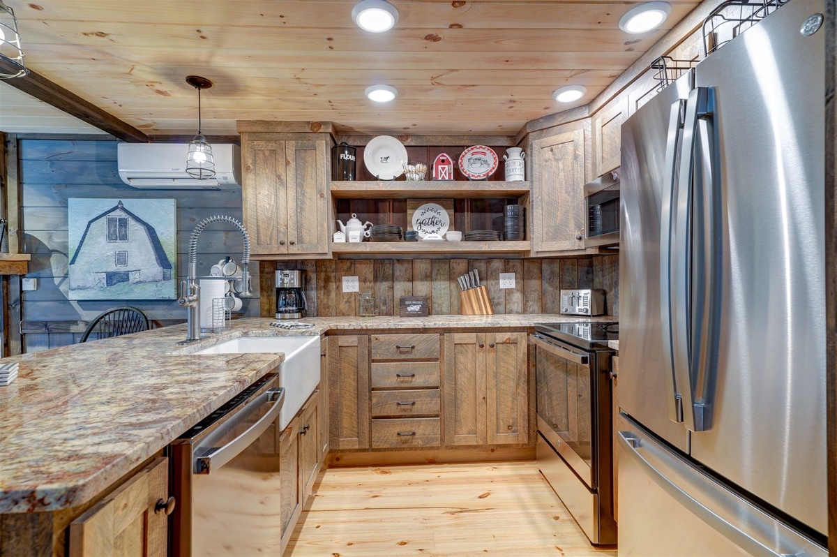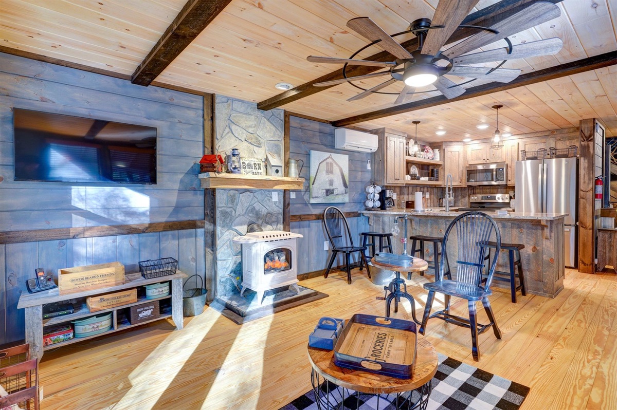 The Barn on Creek's Edge is a newly finished property that has the rustic touches that provide the feeling of going back in time, but with all the newest features that you would expect to have for a relaxing stay. This vacation cabin is a true mix of rustic luxury, found insdie this charming one-bedroom waterfront cabin rental in the Blue Ridge Mountains.